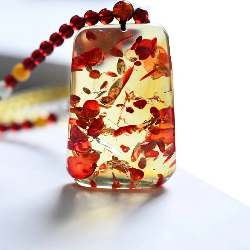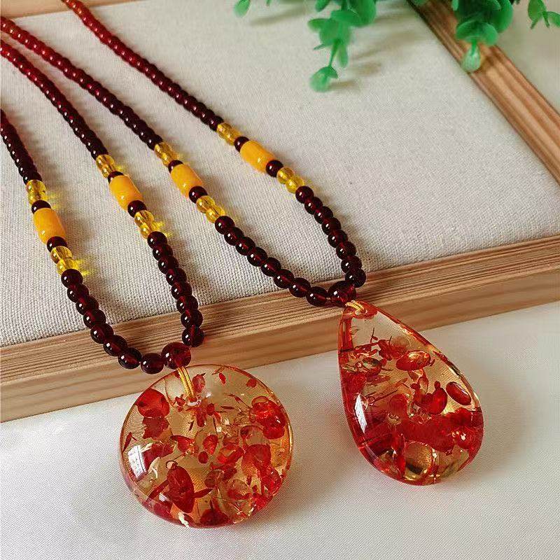 金珀利花珀水滴吊坠毛衣链仿蜜蜡花琥珀项链二代琥珀毛衣链坠手镯