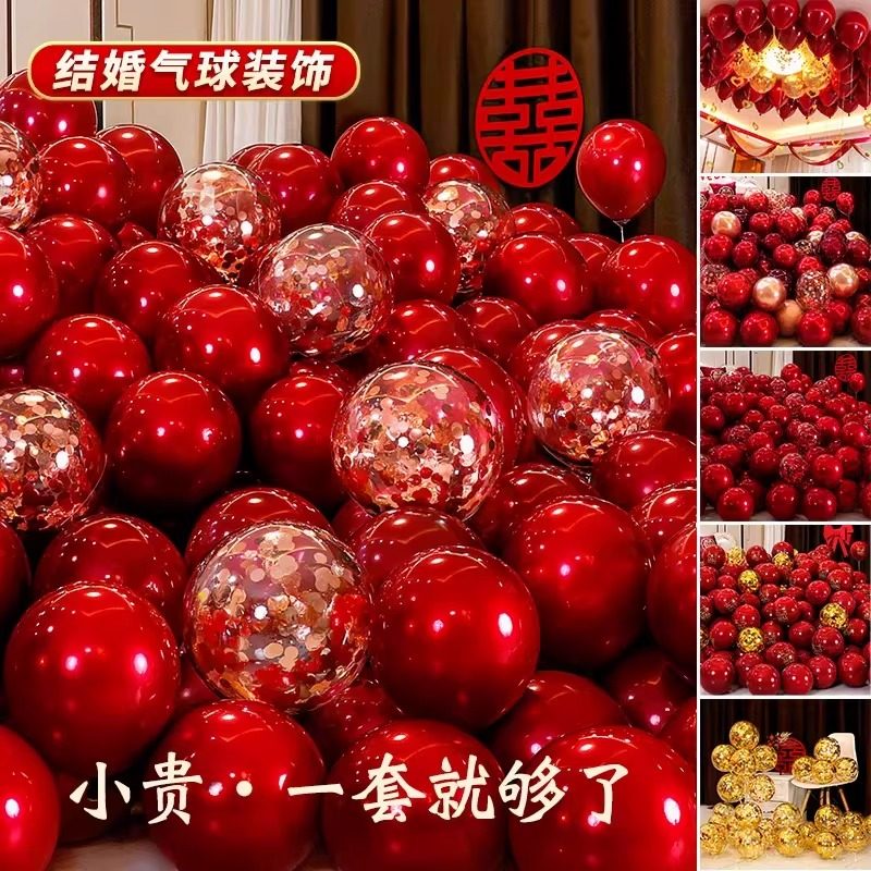结婚气球婚礼订婚场景布置生日背景墙求婚装饰红汽球婚庆用品大全