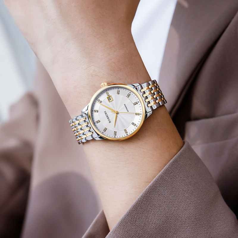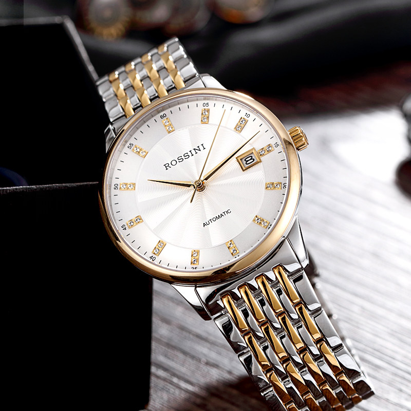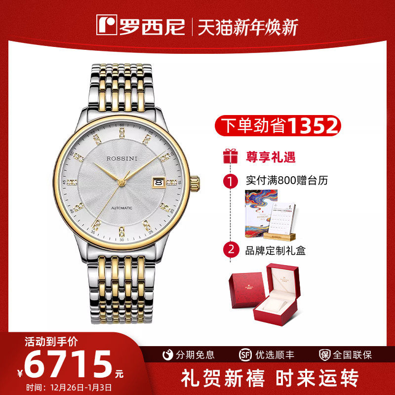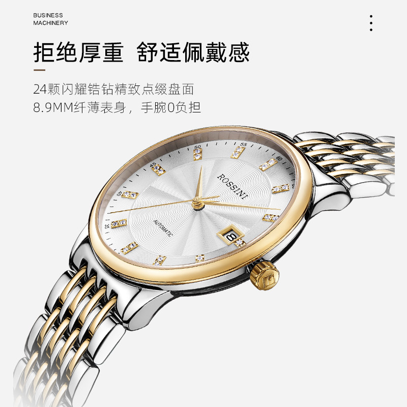 【专柜同款金表】 罗西尼手表男情侣精钢男机械表女表石英表7715