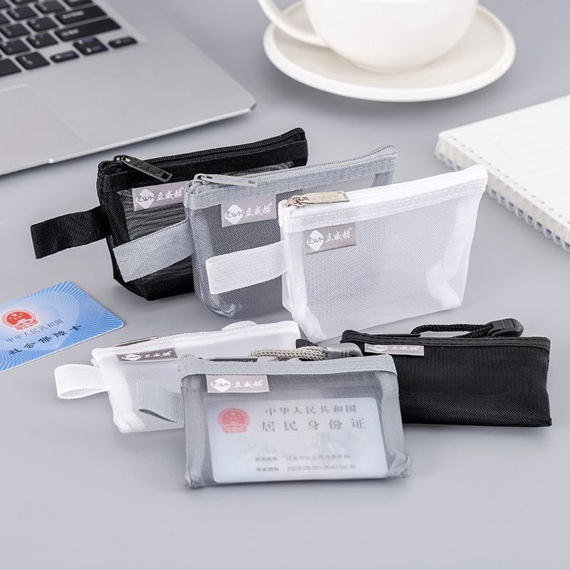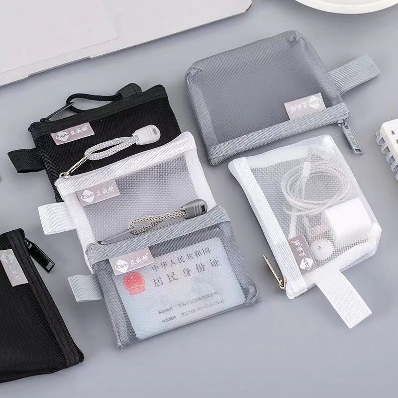 尼龙三角加厚迷你网纱收纳袋外出便携式零钱包透明可视卡片收纳袋