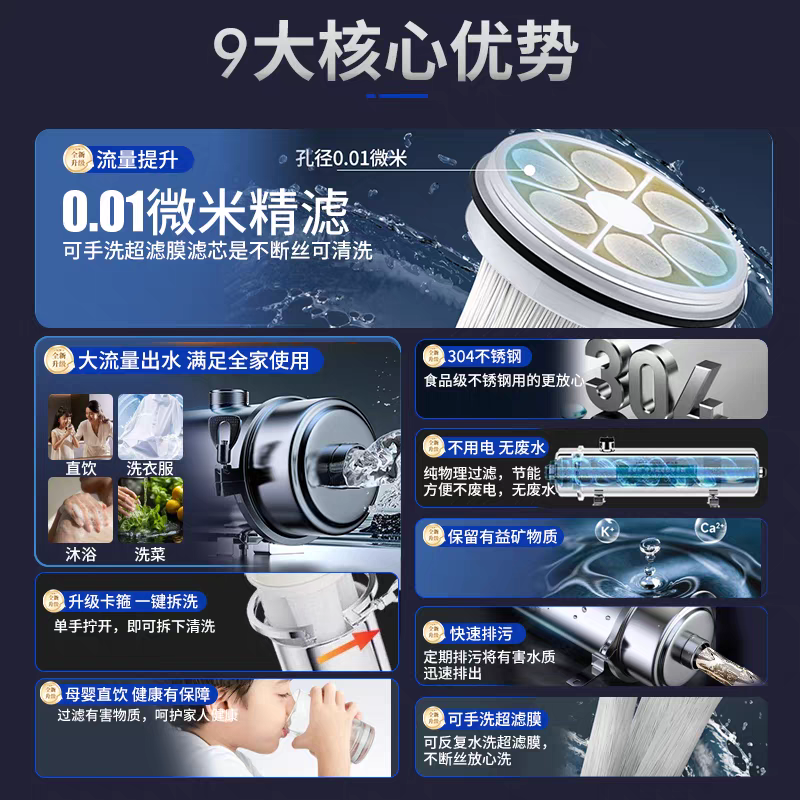 净水器家用直饮厨房自来水超滤净化水机前置活性炭五级过滤器