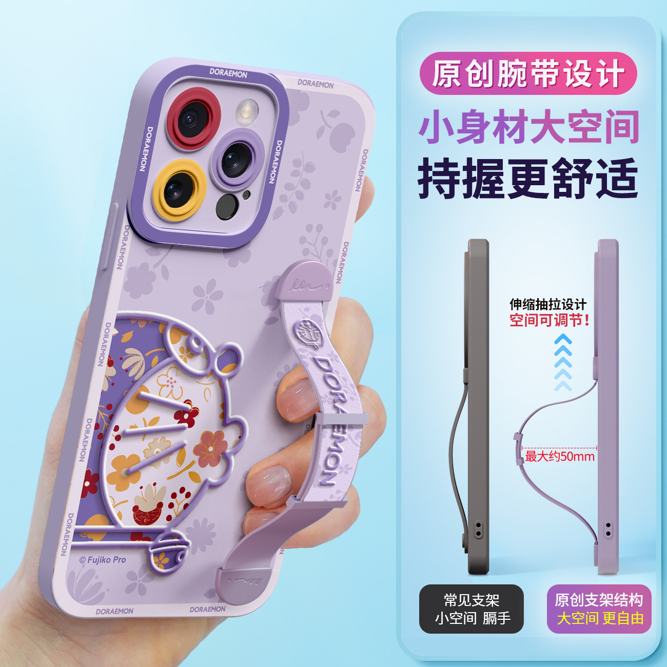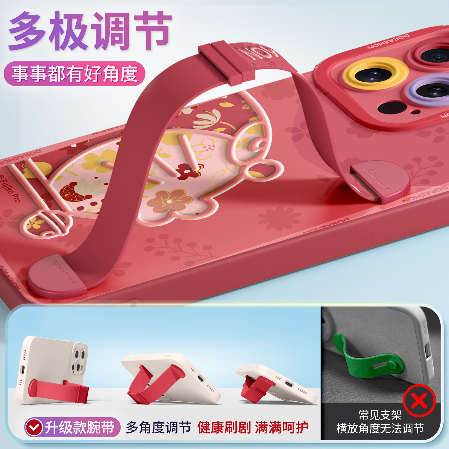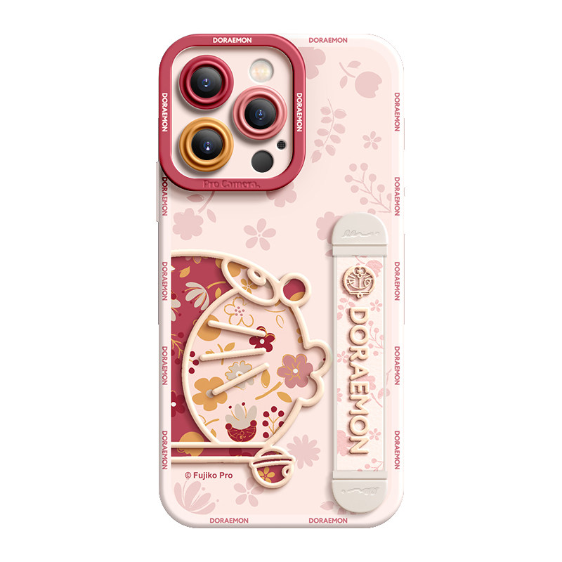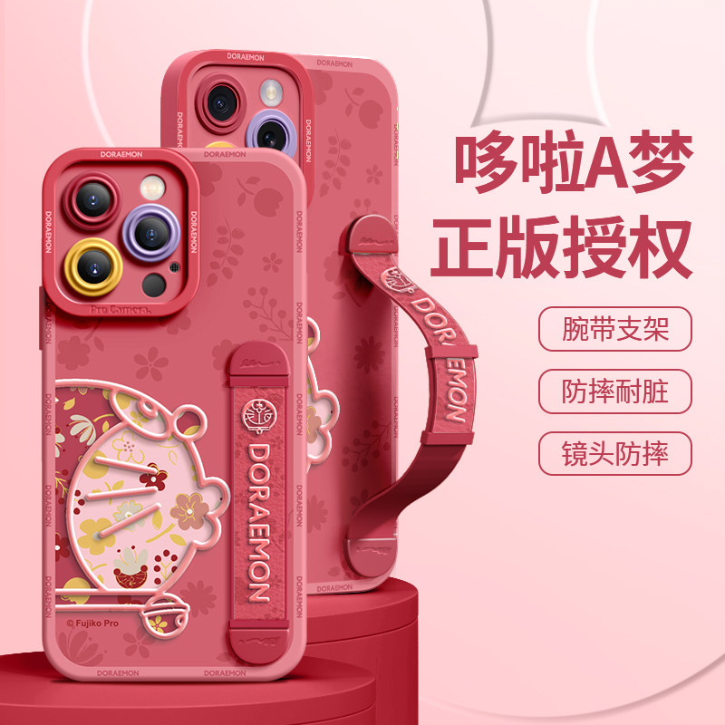 哆啦A梦适用苹果17ProMax手机壳新款16Pro全包15防摔14软硅胶Plus腕带13支架12女11情侣IPhone17半边花朵叮当