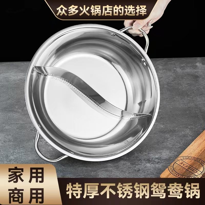 电磁炉不锈钢鸳鸯锅商用火锅盆加厚涮锅清汤锅打火锅锅具双耳特厚