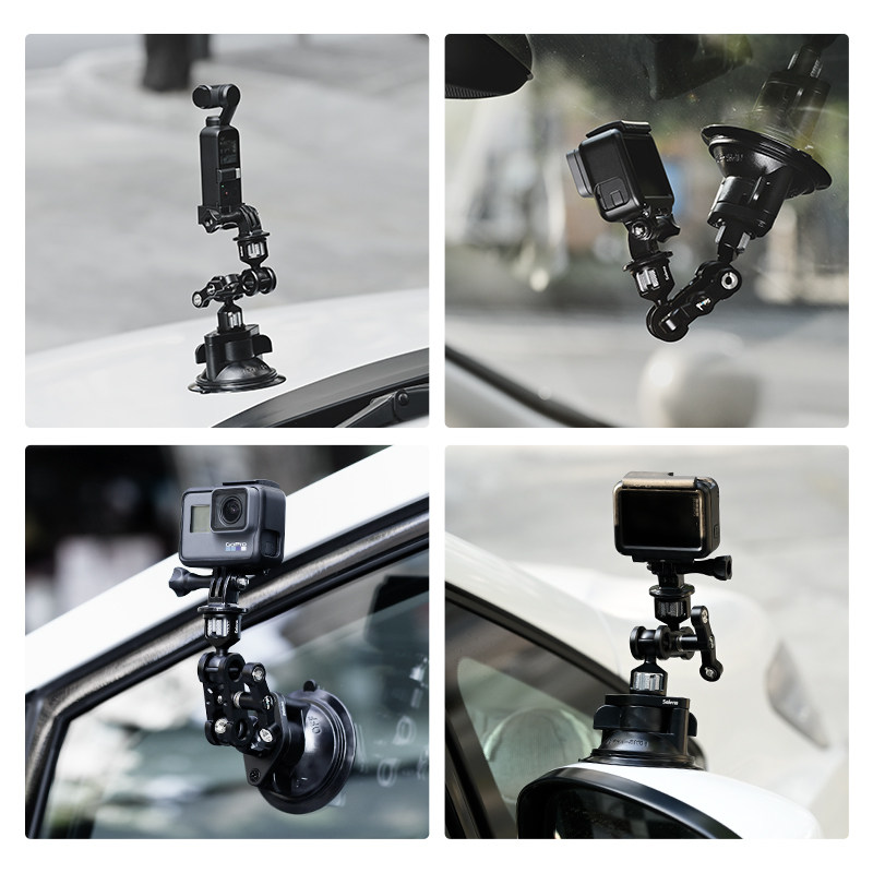 车载吸盘支架运动相机汽车车顶固定口袋云台摄影手机直播车拍配件