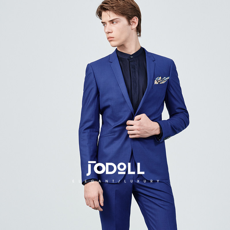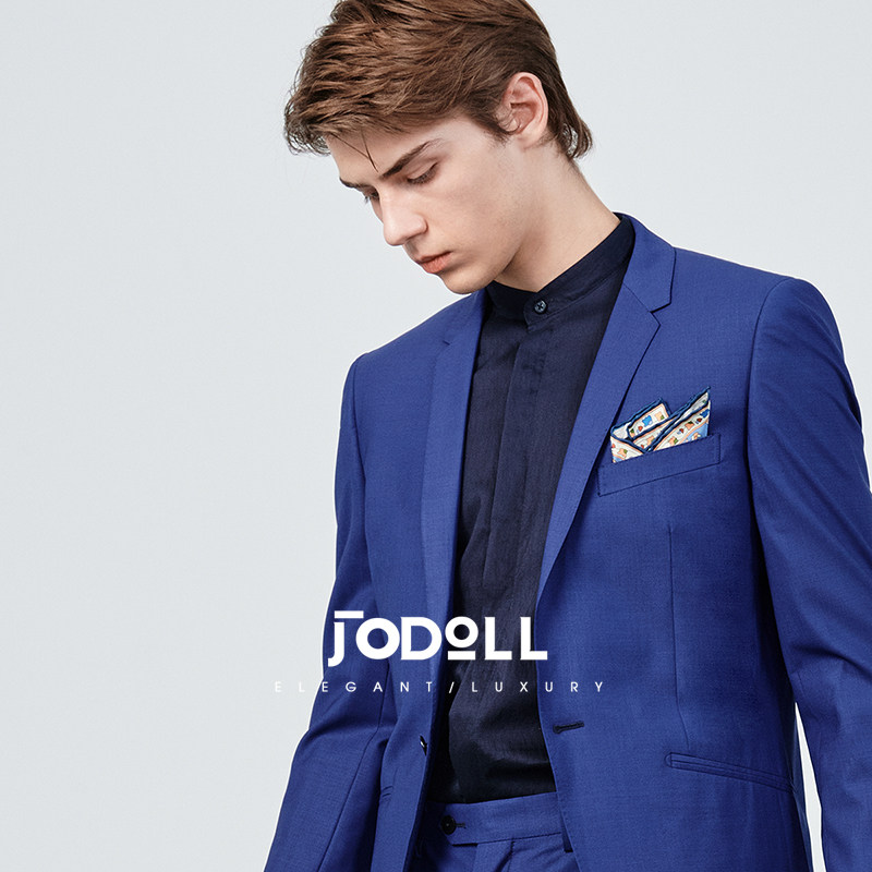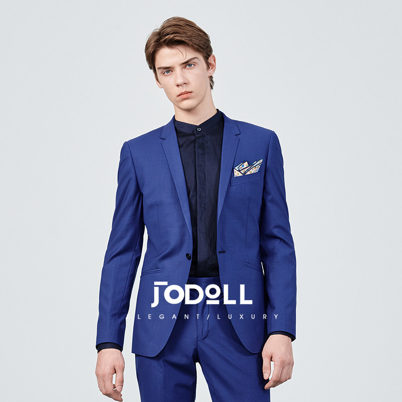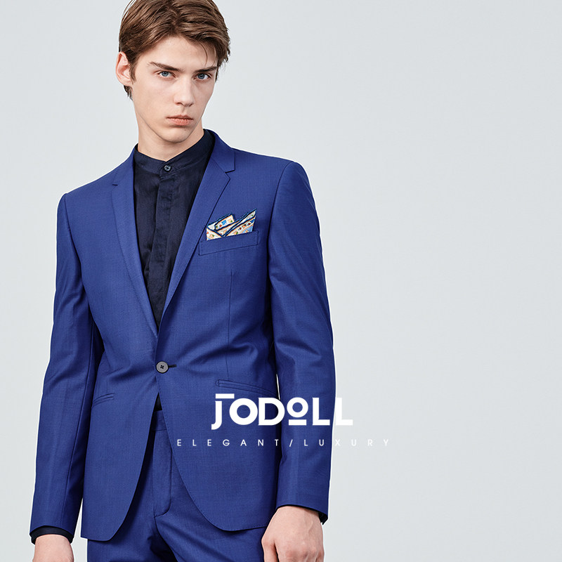 JODOLL乔顿【羊毛桑蚕丝】男士西服外套商务休闲宝蓝色修身小西装