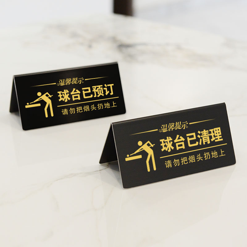 不锈钢台球厅球台已清理温馨提示牌台球室双面摆桌请勿黑灯打球牌