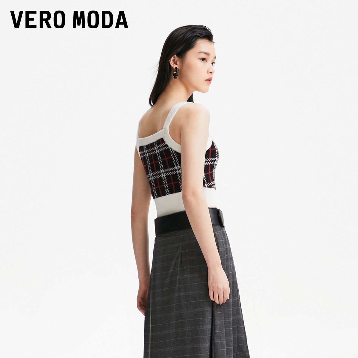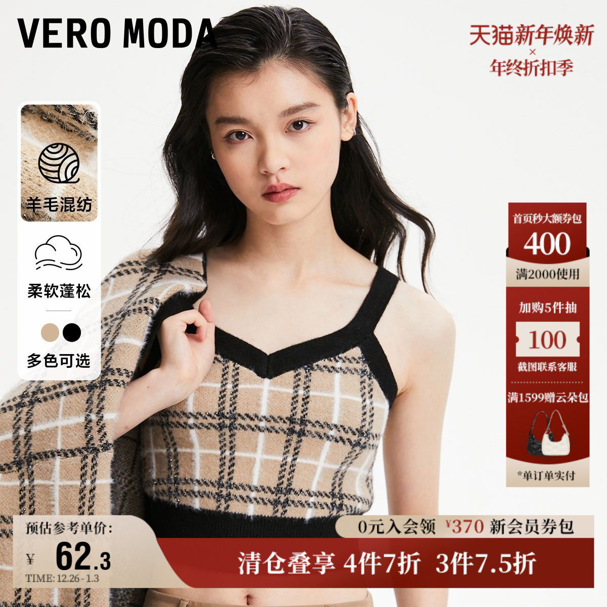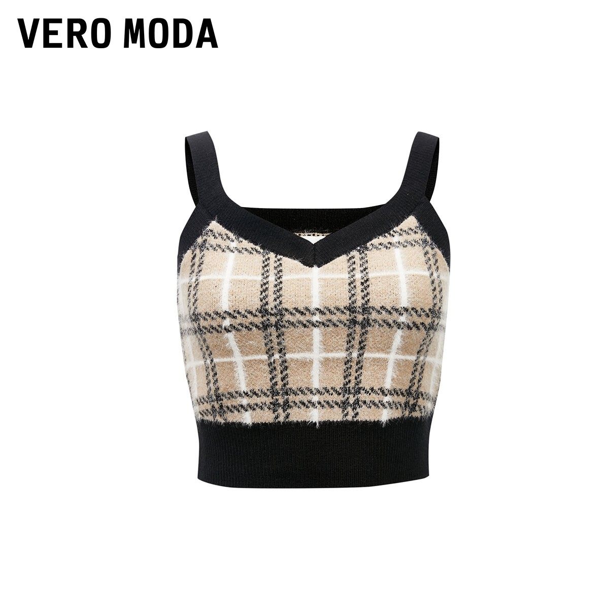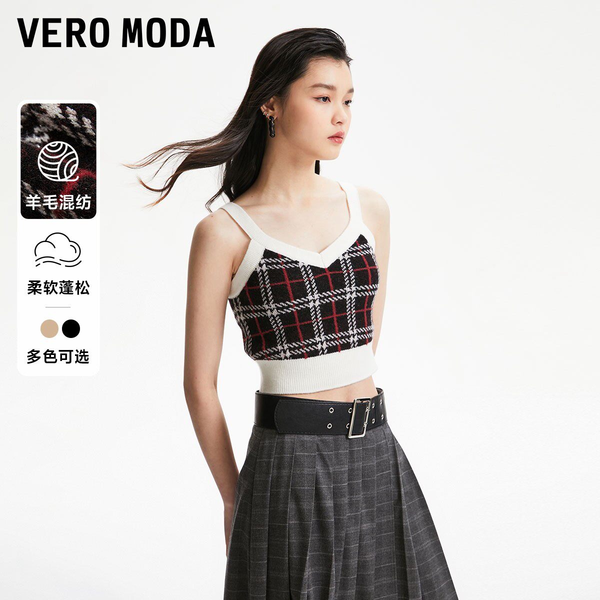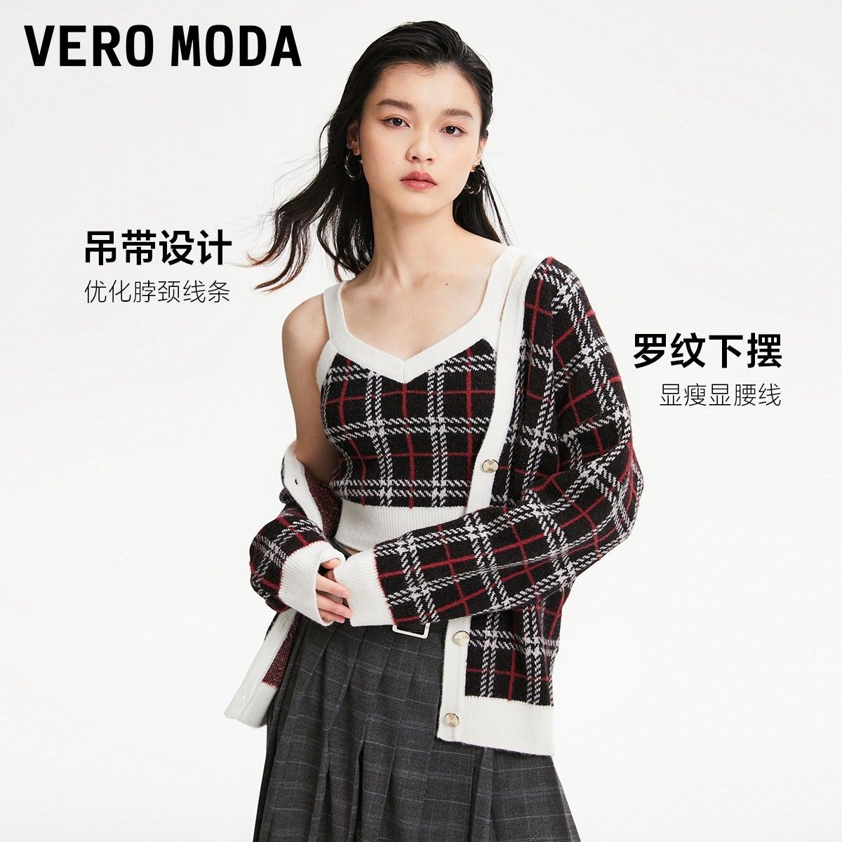 Vero Moda奥莱针织吊带女秋冬清仓格纹英伦气质背心内搭短款百搭