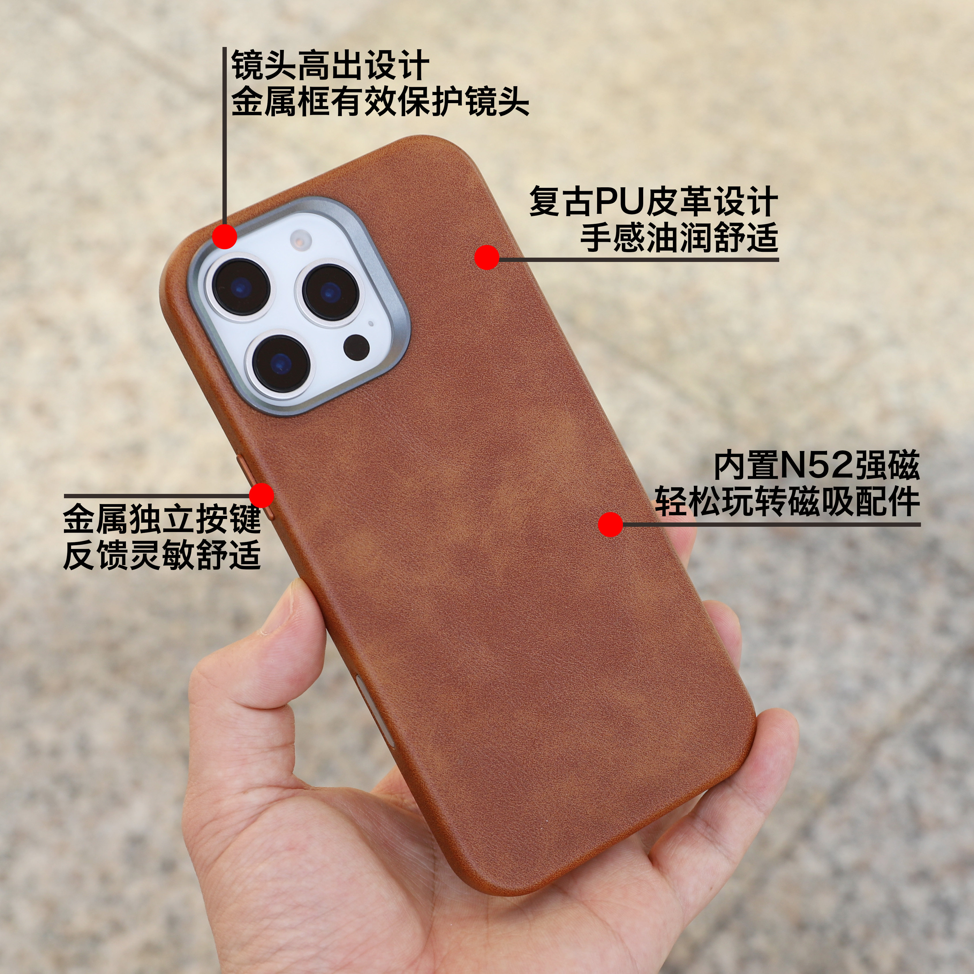 新款复古皮革磁吸壳适用于iphone16promax全包防摔手机壳15pro高档做旧水洗14pro个性商务magsafe保护套热卖