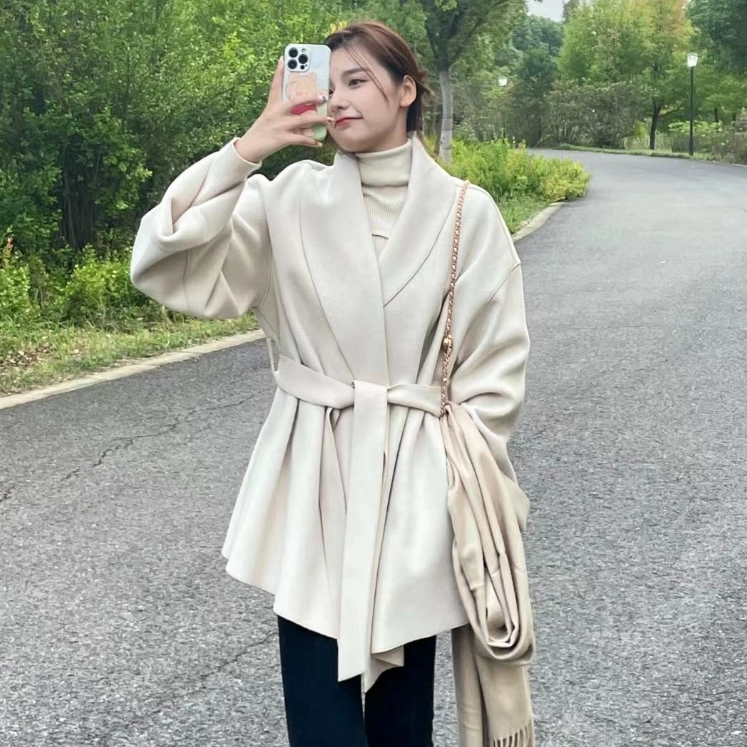 反季清仓秋冬双面羊绒大衣女简约高端气质款小个子西装毛呢外套