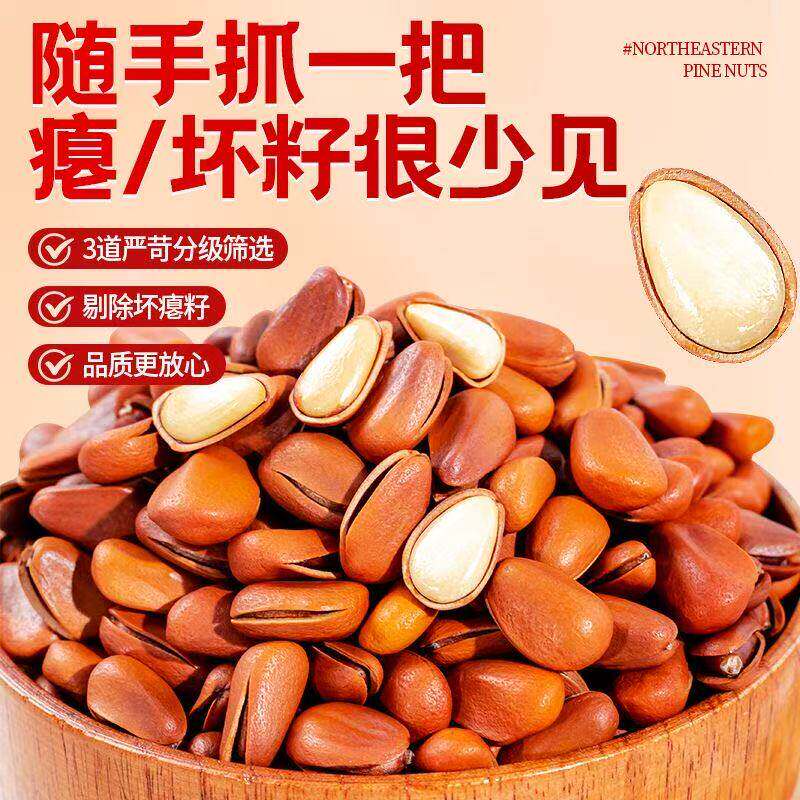 2025新货开口东北松子500g独小包装大颗粒手剥红松坚果零食旗舰店