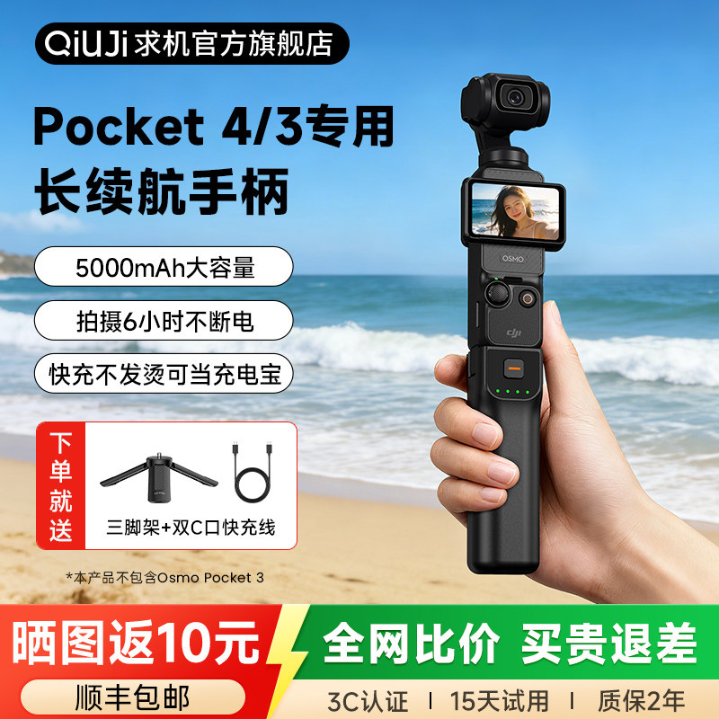 【国家3C认证】QIUJI适用于大疆pocket3/4续航手柄移动电源配件电池充电宝充电手柄osmo口袋相机pocket4配件
