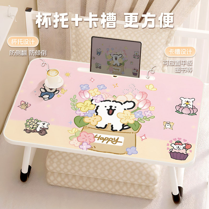 线条小狗床上小桌子宿舍学生学习折叠桌书桌儿童膝上桌写字作业桌家用卧室飘窗办公手账电脑桌便携移动小桌板
