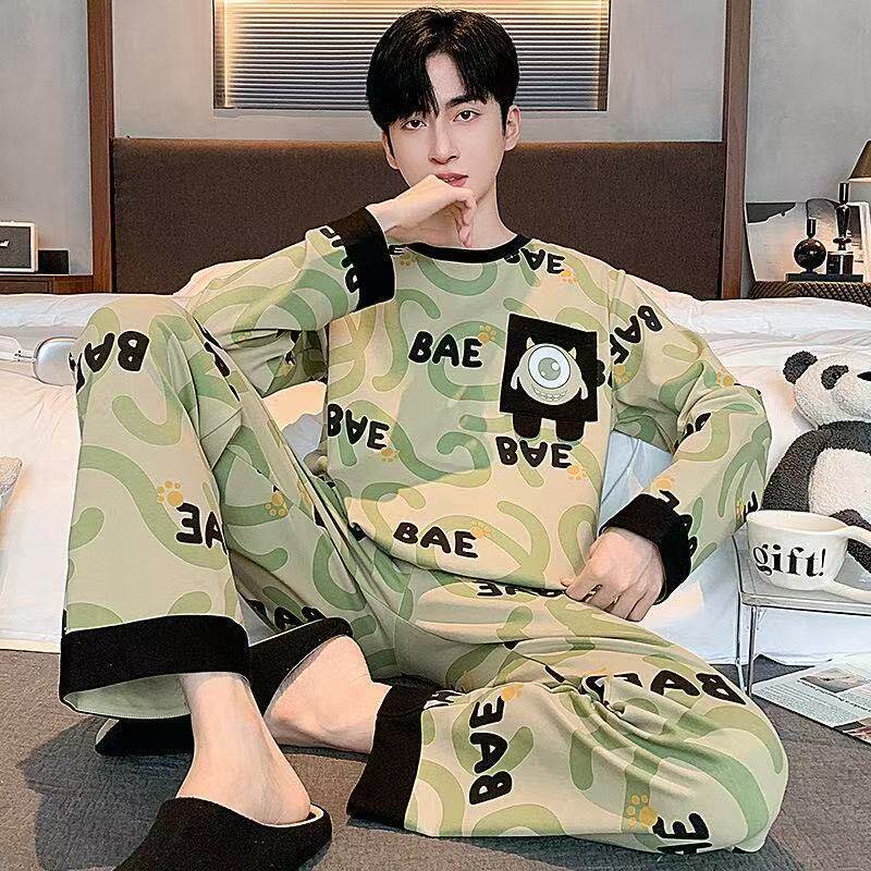 男士睡衣春秋季2025新款纯棉长袖学生秋冬天家居服套装条纹休闲