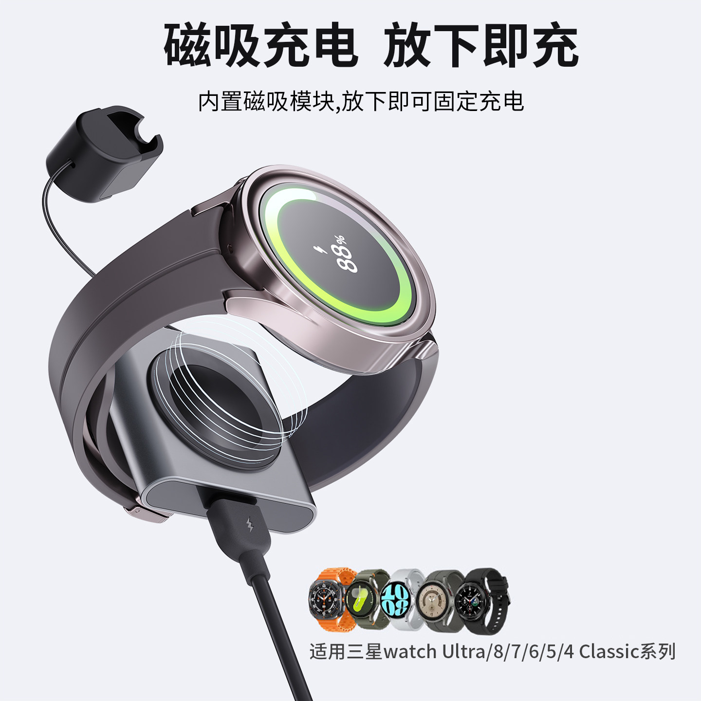适用三星智能手表watch8classic无线充电器Galaxy7/6磁吸底座Type-c口便携watch5/4/ultra配件