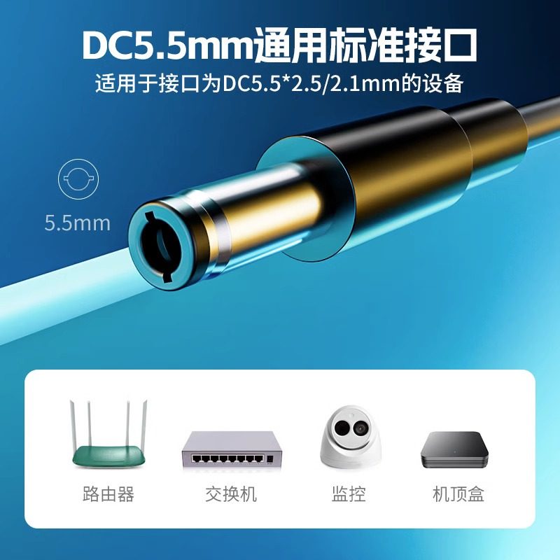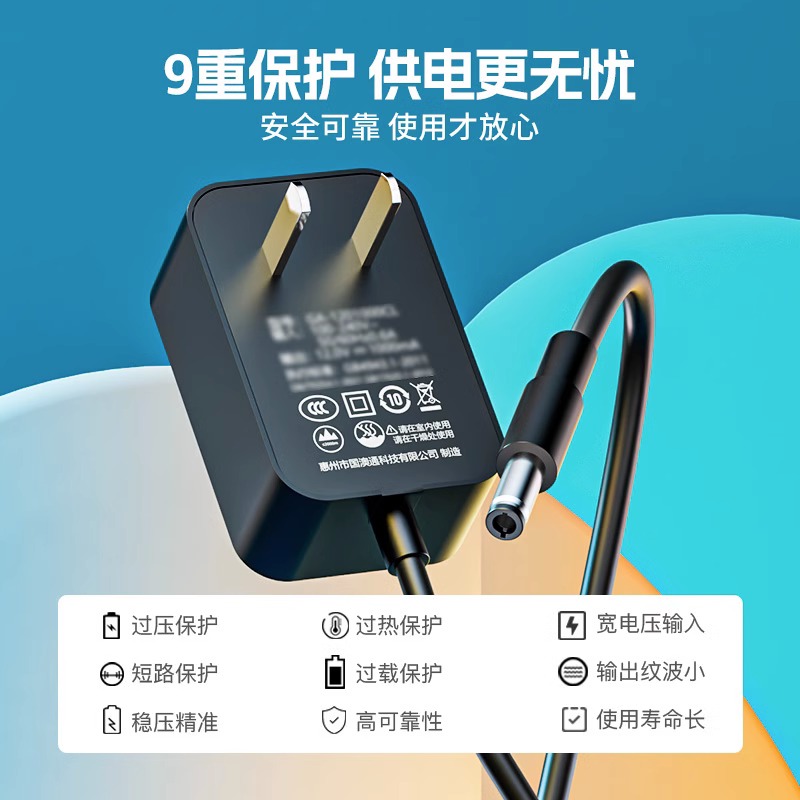 12v1a电源适配器路由器电源线dc5.5黑色适用路由器移动硬盘光纤猫5v9v12v1a电视机顶盒通用充电线插头扁头