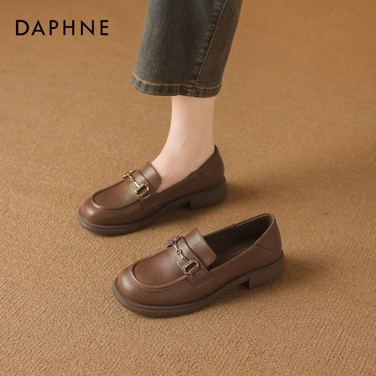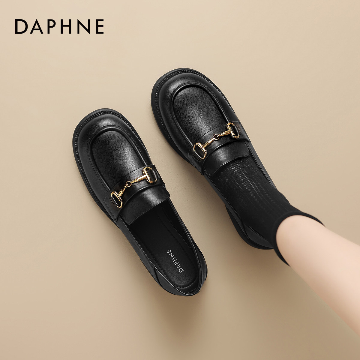 达芙妮乐福鞋女2026新款春季黑色小皮鞋女平底单鞋豆豆鞋软底女鞋