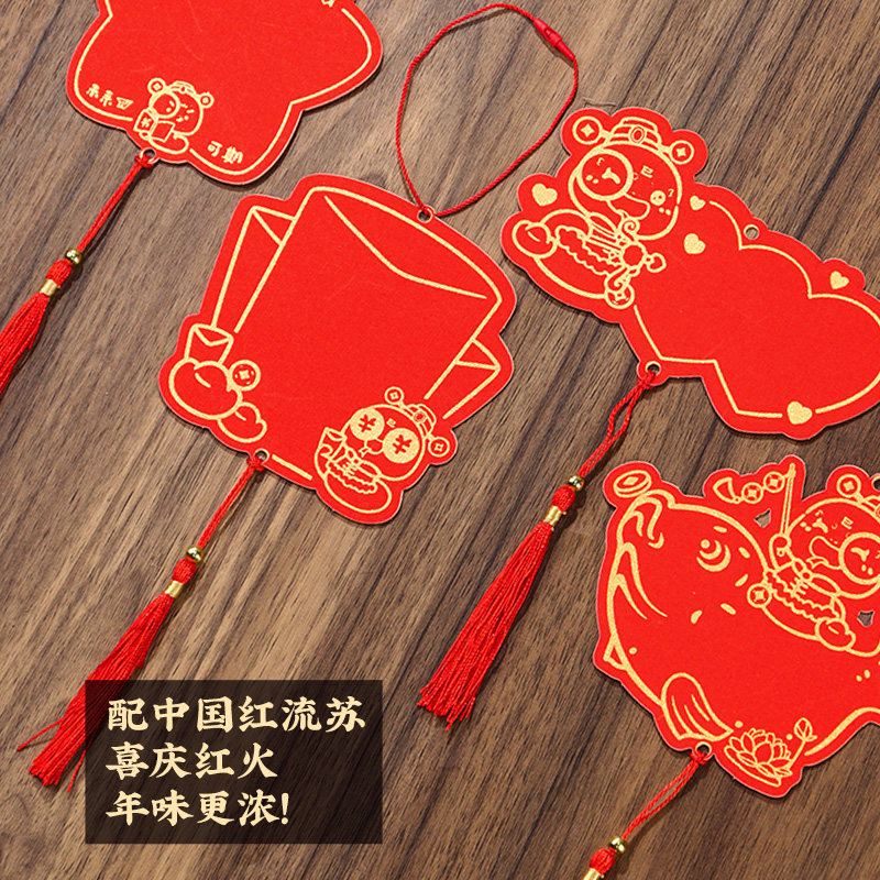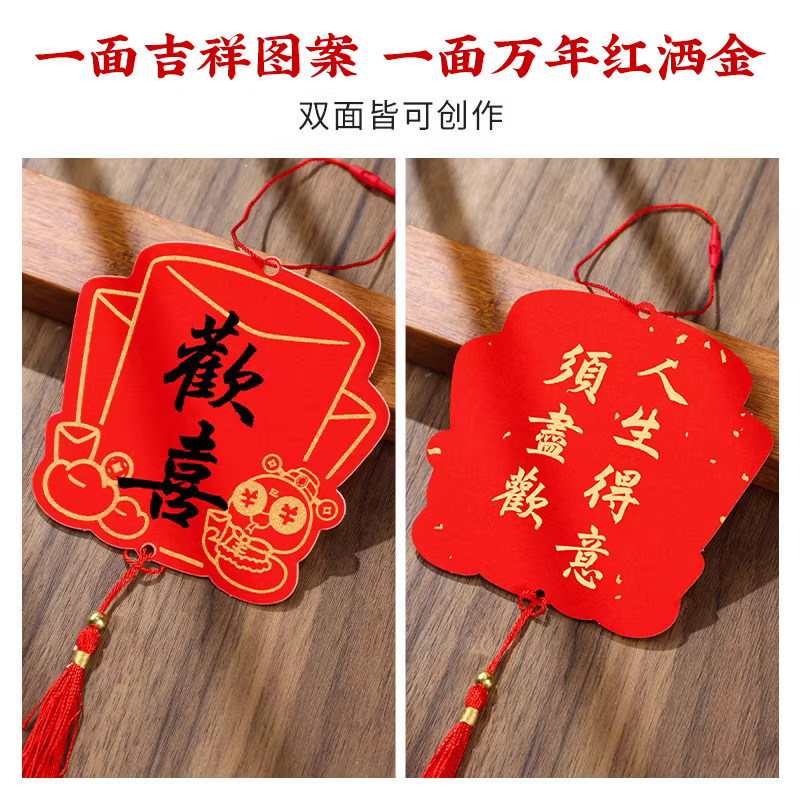 福卡挂件双面万年红迷你红小福卡挂件春节手写福字红纸斗方对联专用纸春联空白书法摆件祈愿福卡喜庆卡片挂饰