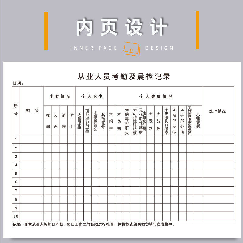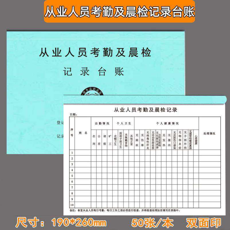 晨检记录本餐饮单位从业人员晨检记录本食品单位食品采购记录本册