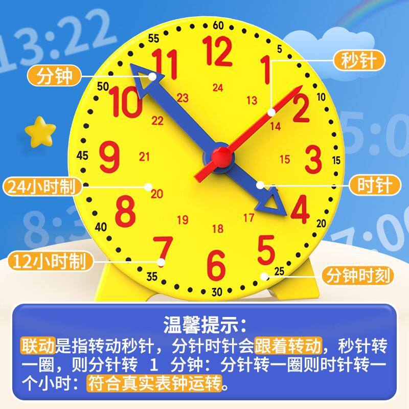 钟表模型小学教具时钟面学具数学一二年级三针联动表盘认识时间