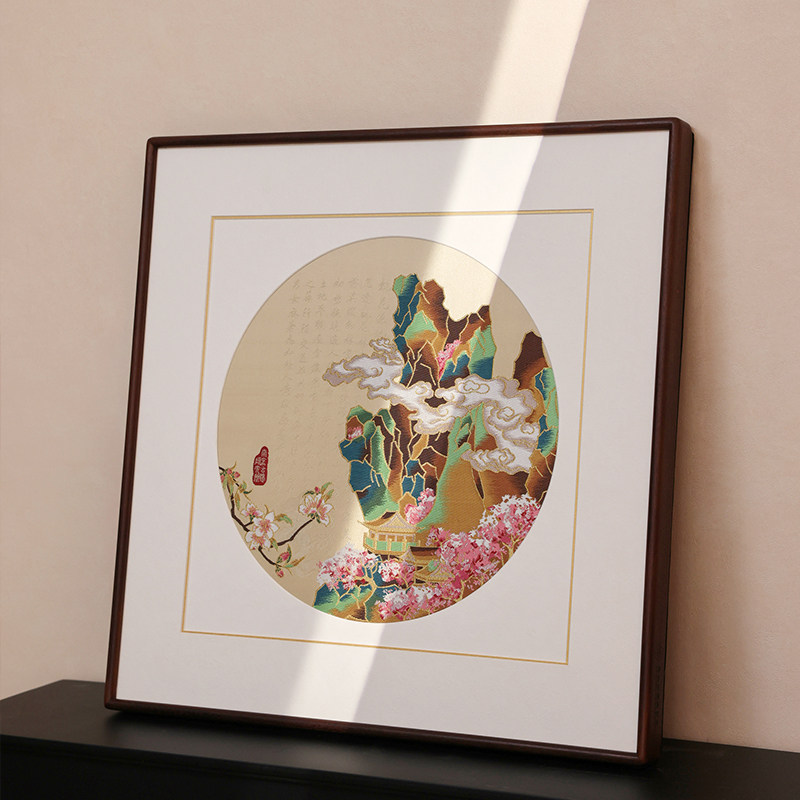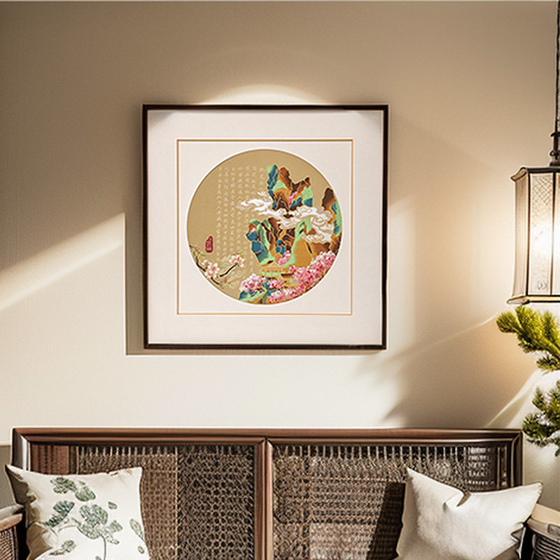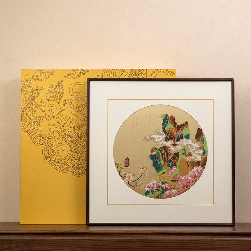 桃花源南京云锦新中式山水装饰画玄关客厅茶室挂画送乔迁轻奢礼品