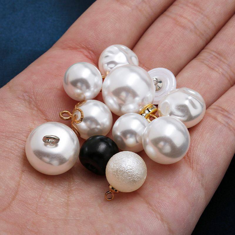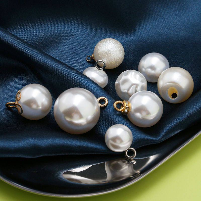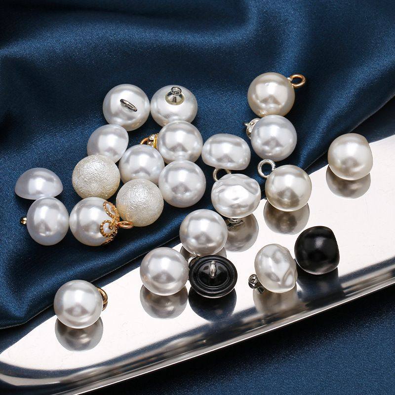 黑色白色珍珠扣仿珍珠旗袍古装纽扣蘑菇扣光头扣圆形铜脚馒头扣子