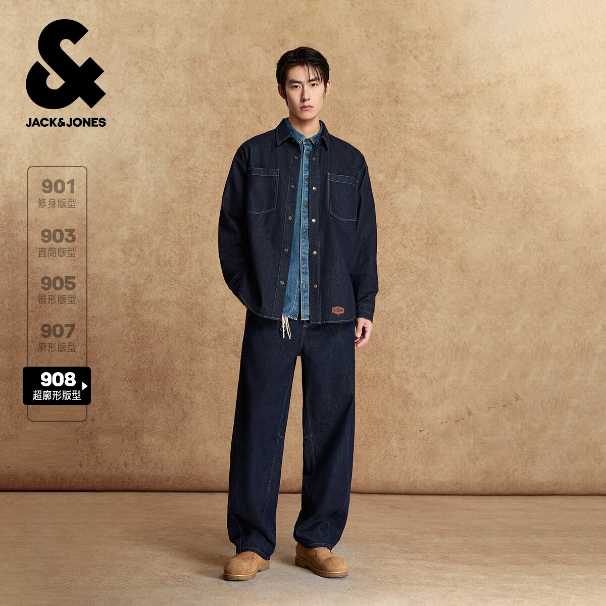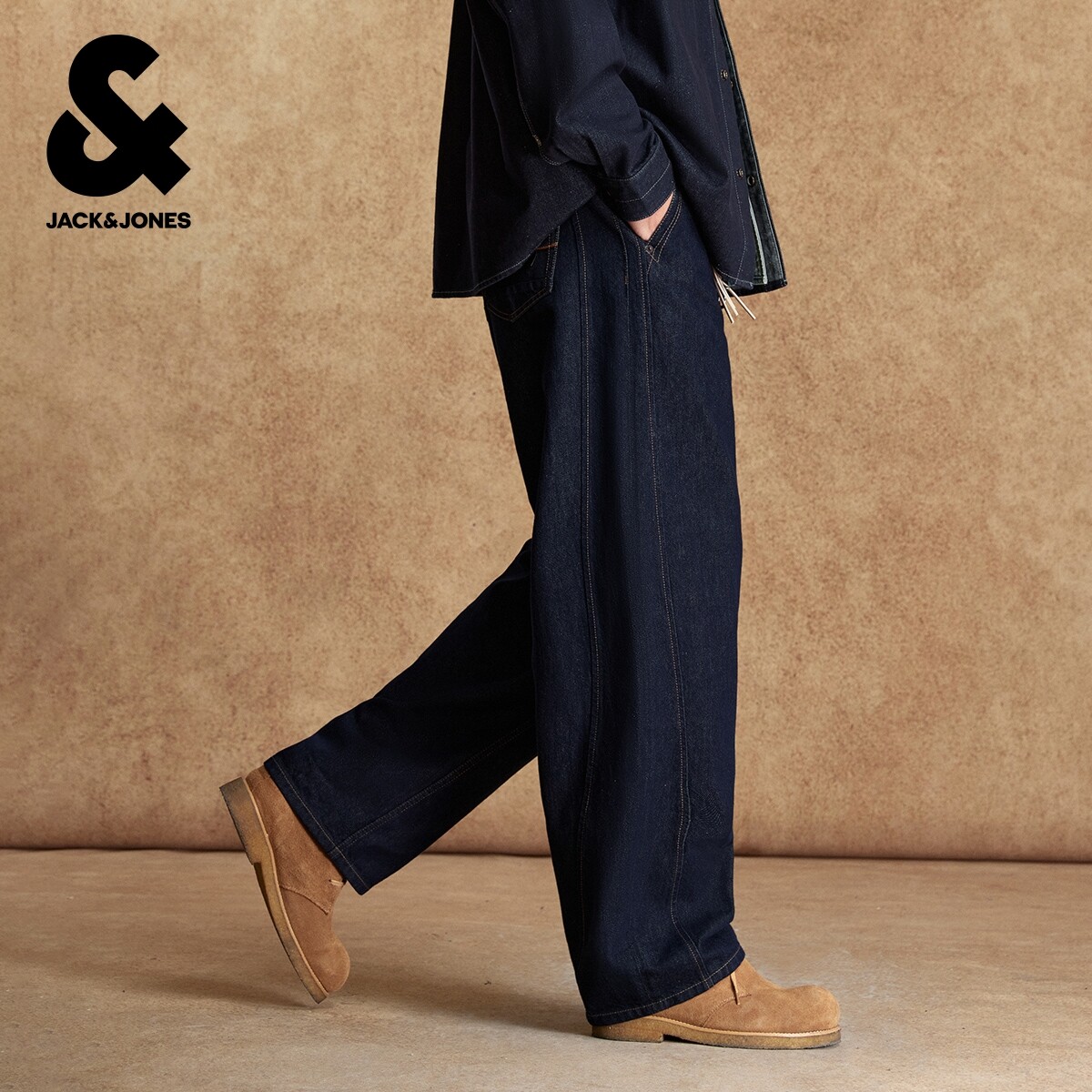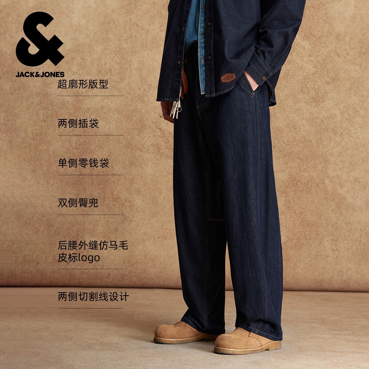杰克琼斯男装牛仔裤春秋出街logo皮标超廓形时尚百搭长裤子男款