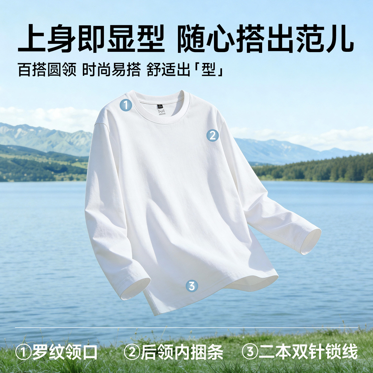 猫人白色打底衫男重磅纯棉圆领内搭上衣基础百搭秋冬男士长袖t恤J