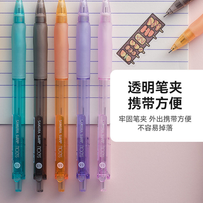 樱花自动铅笔糖果色透明笔杆高颜值三角自动笔素描绘画手绘考试书写活动铅笔小学生画画专用0.5mm0.7铅笔