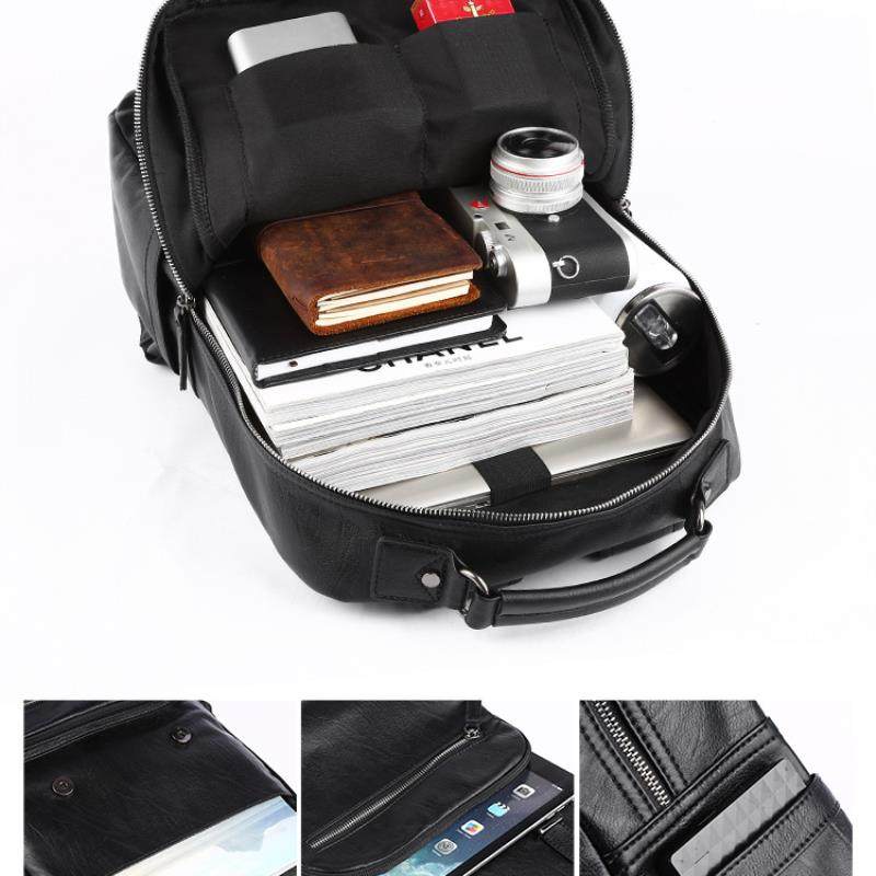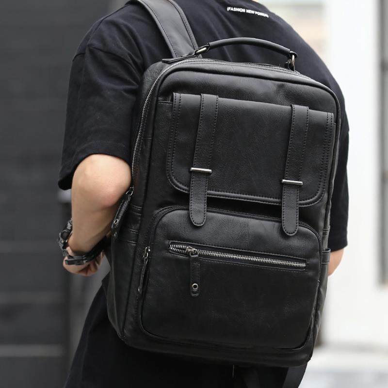 韩版男士pu皮双肩包中学生简约书包时尚潮流旅游背包青年休闲男包