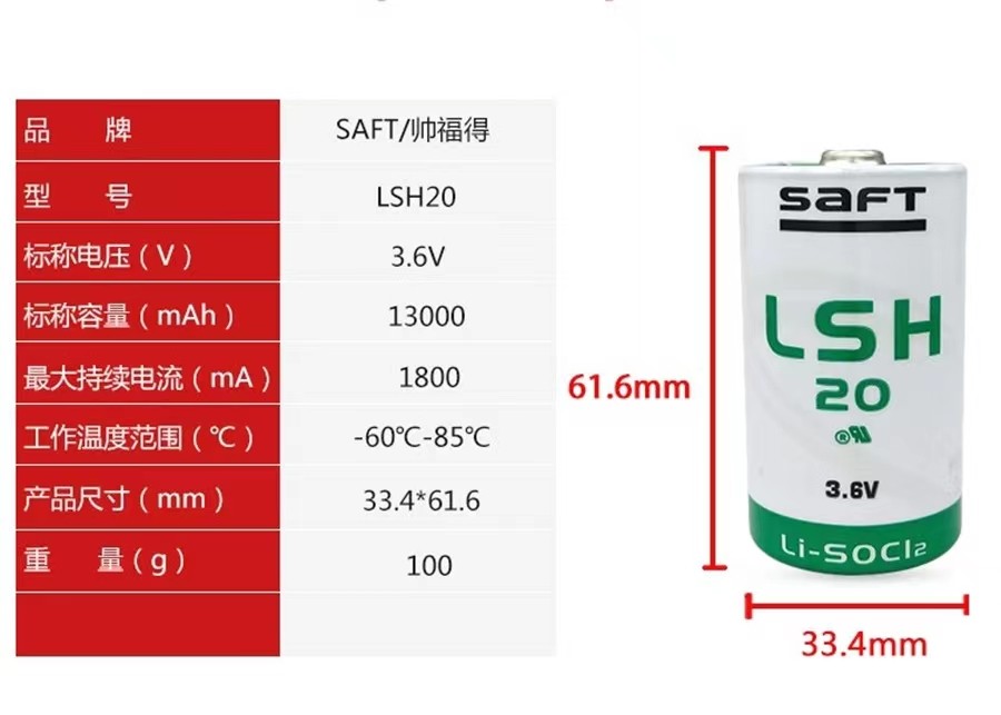 saf LSH20锂电池3.6V功率型1号D全新PLC工控编程电池