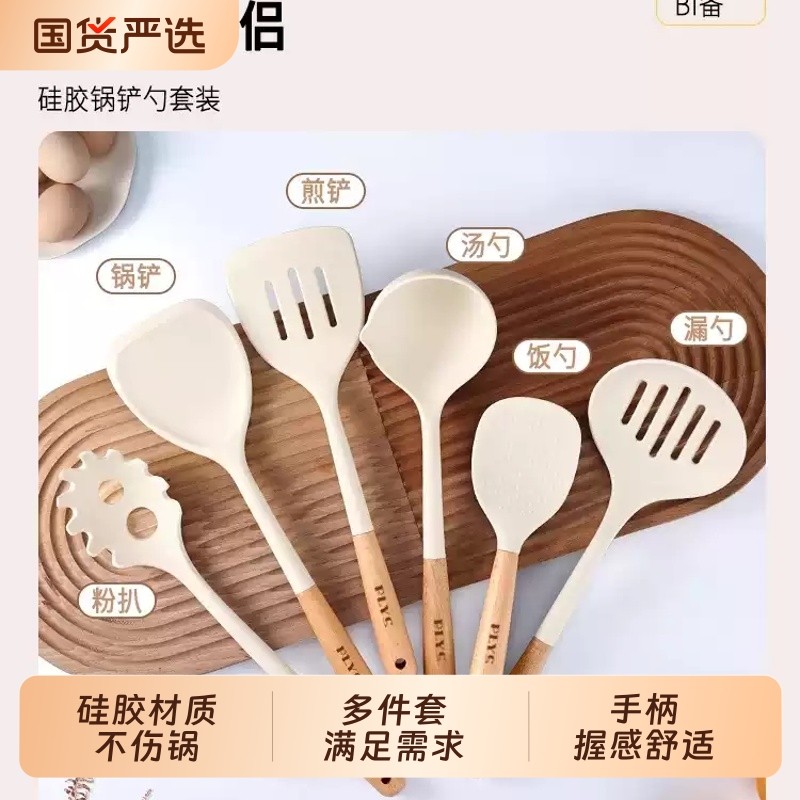 硅胶锅铲套装家用炒菜铲子不粘锅专用耐高温汤勺漏勺子食品级厨具