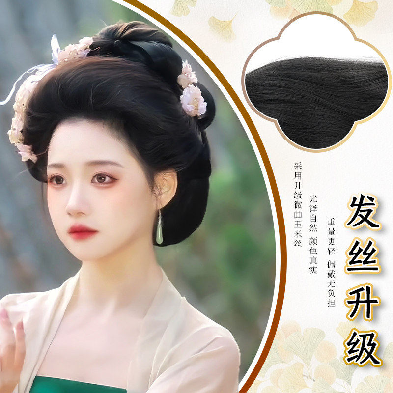 汉服假发全发丝抱面唐风前额垫发包裙发髻古装造型牛角包一体式