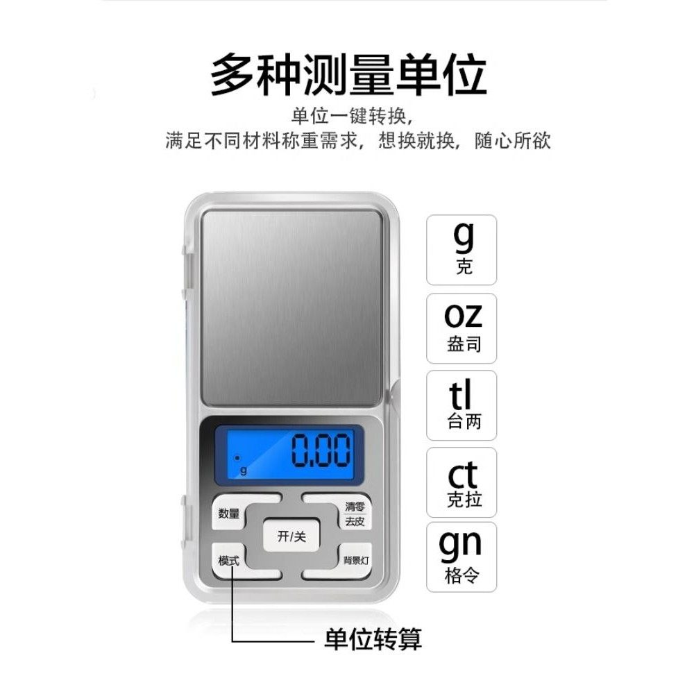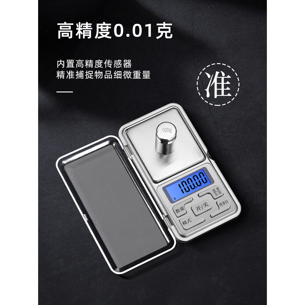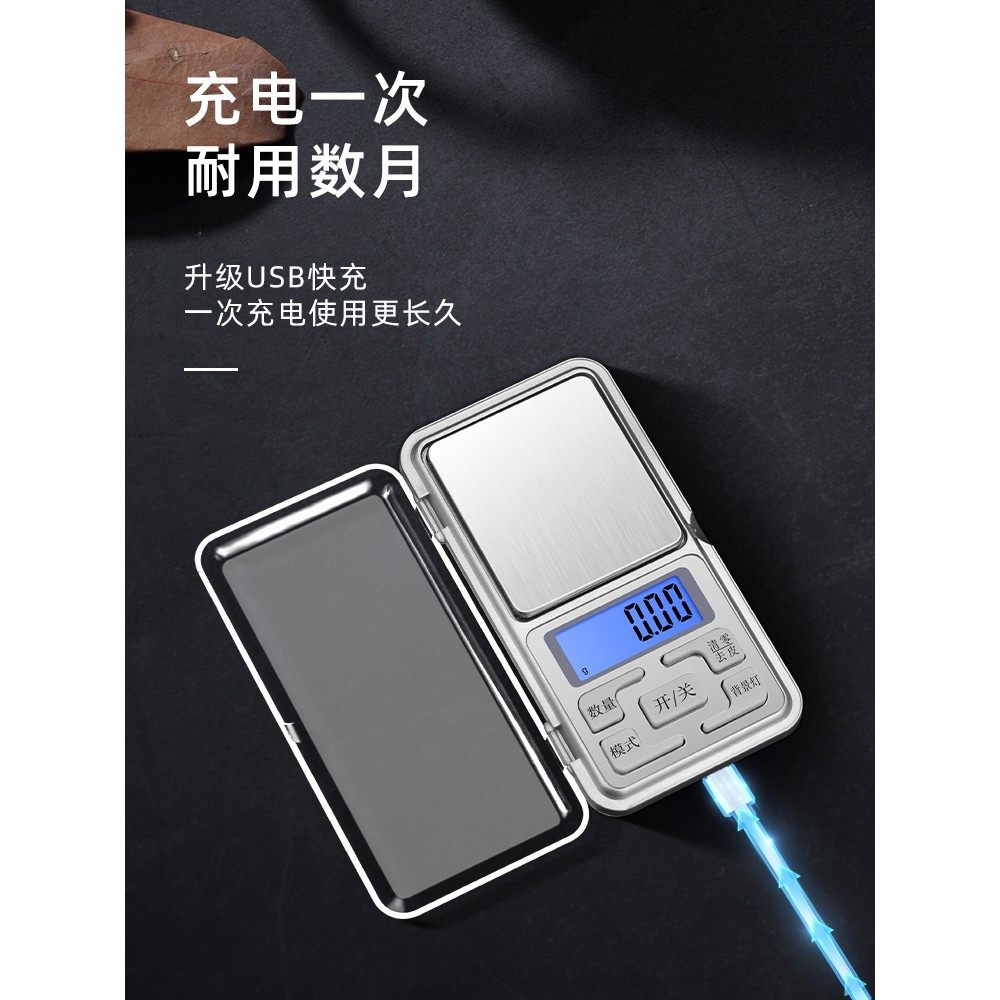 高精度珠宝称黄金电子秤克重称家用电子称精准克秤称重充电托盘