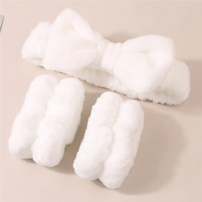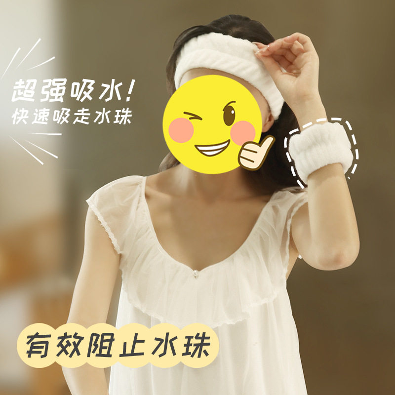 洗脸防湿三件套珊瑚绒吸水束发带手腕带女士洗漱防打湿工具蝴蝶结