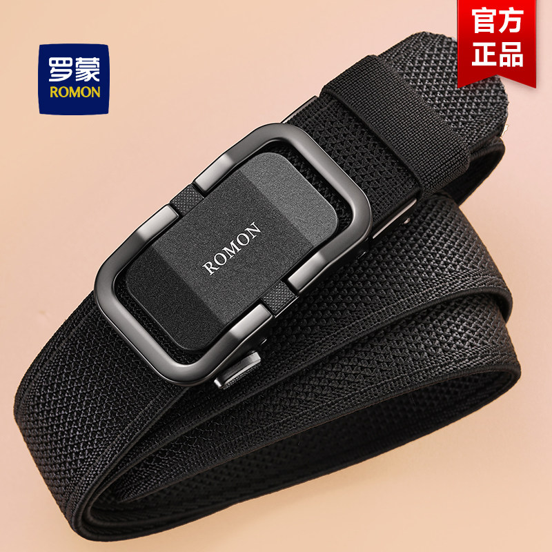 罗蒙帆布腰带男自动扣尼龙裤带时尚休闲百搭编织战术腰带快拆皮带