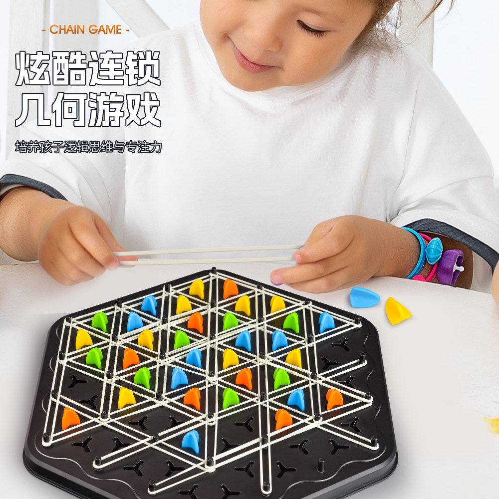 儿童益智连锁棋游戏三角形皮筋棋类玩具男专注力逻辑思维训练互动