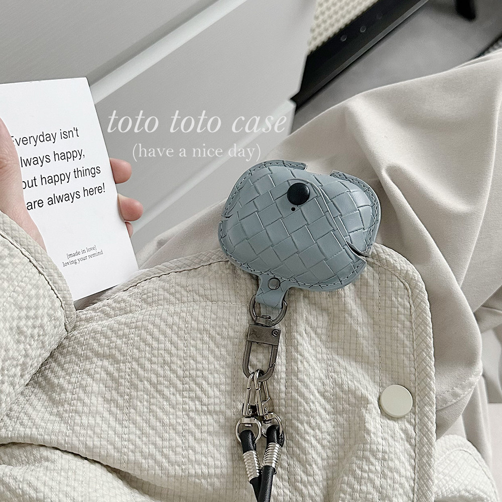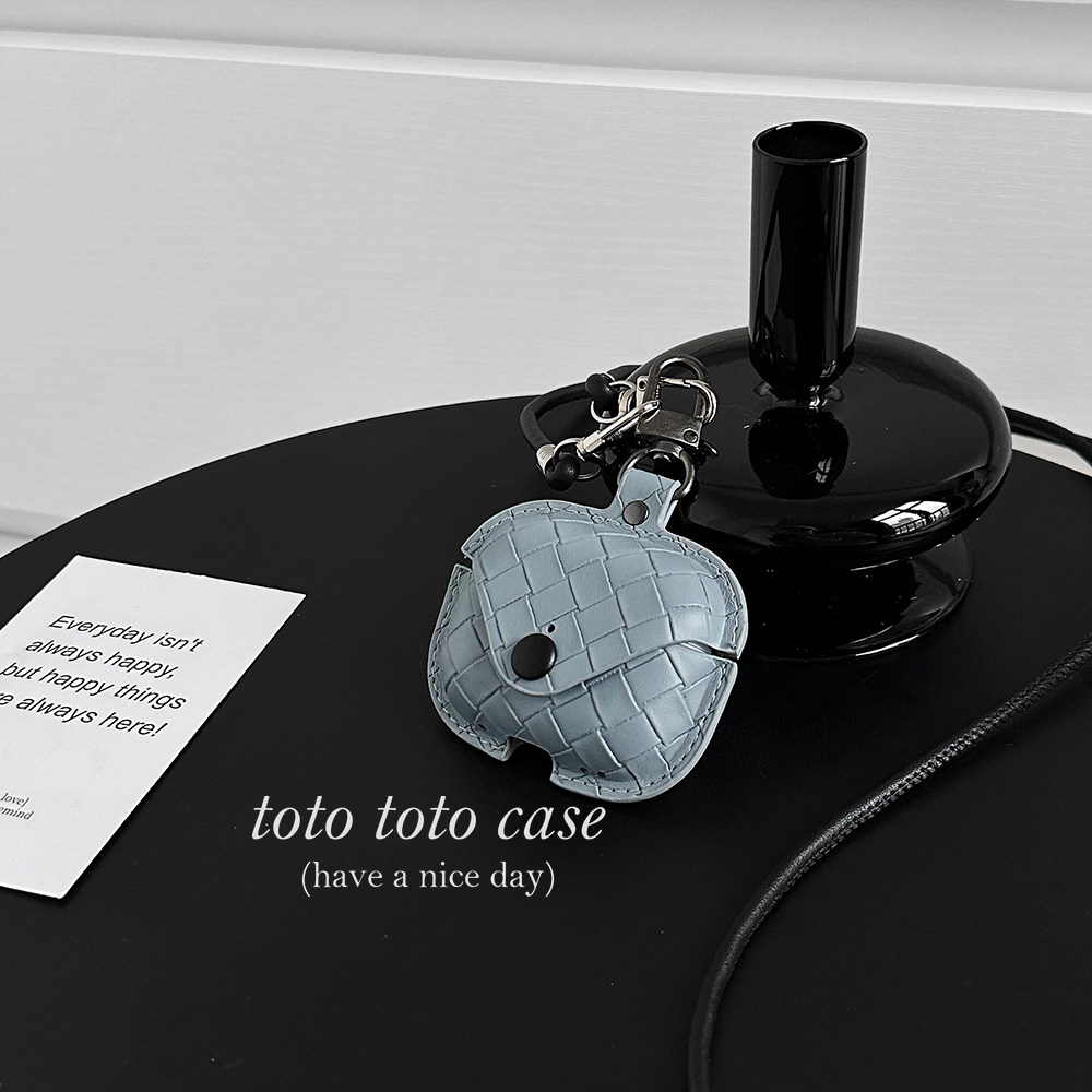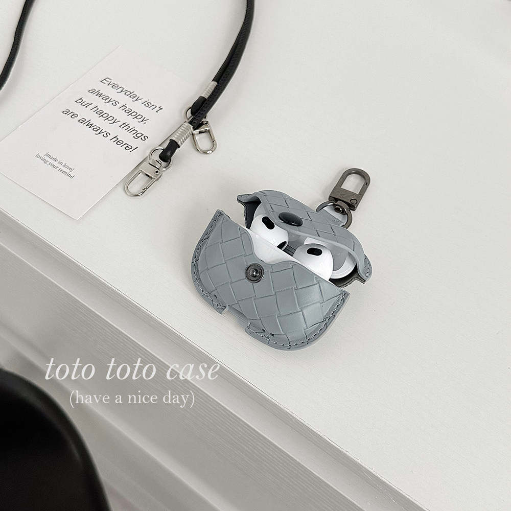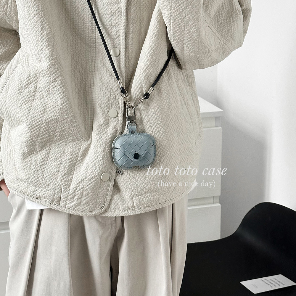 小众ins复古蓝灰色编织纹皮质耳机套斜跨绳适用Airpodspro2保护套苹果2/3代简约纯色pro新款Airpods4耳机壳