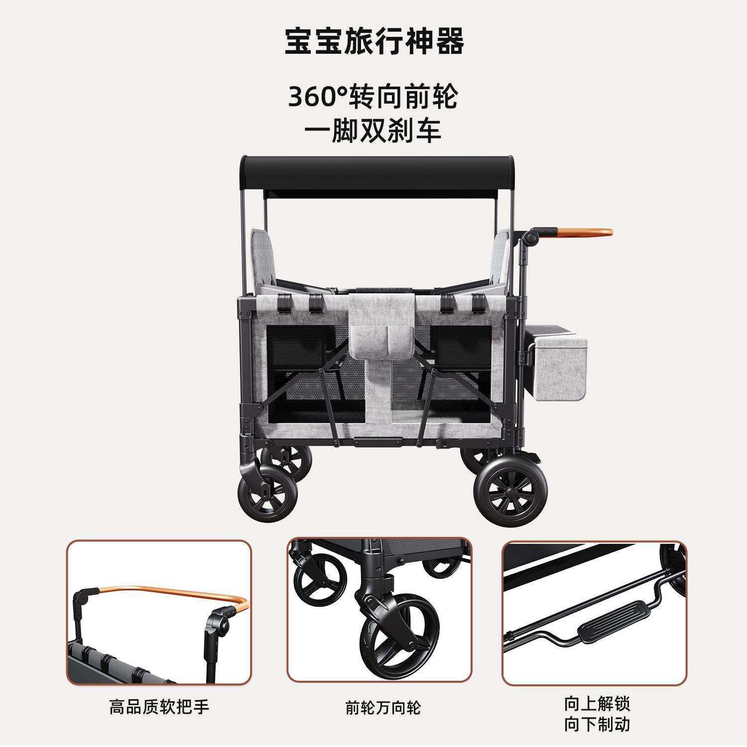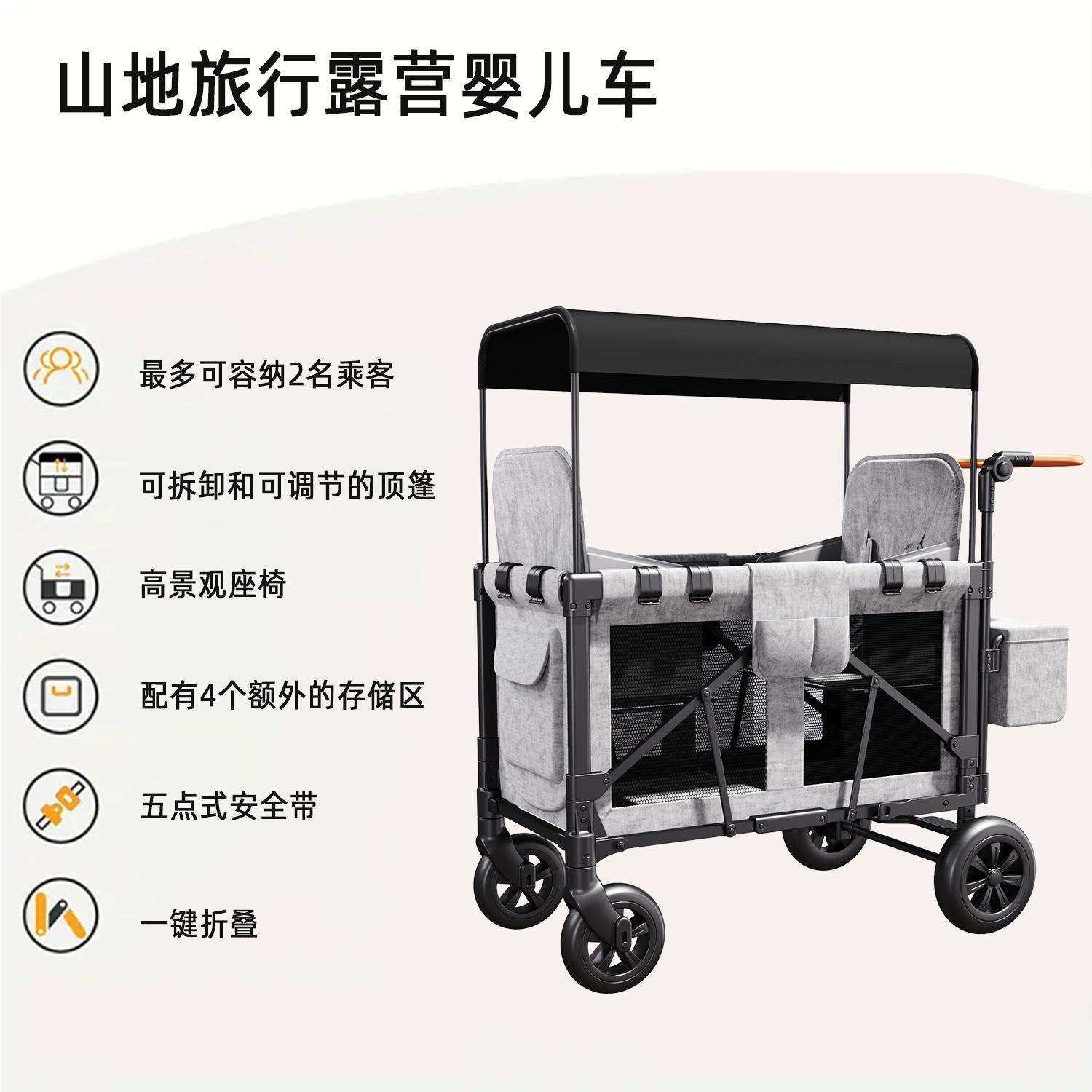 山地车婴儿童加长推车可坐可躺双胞胎宝宝二胎神器营地车双人