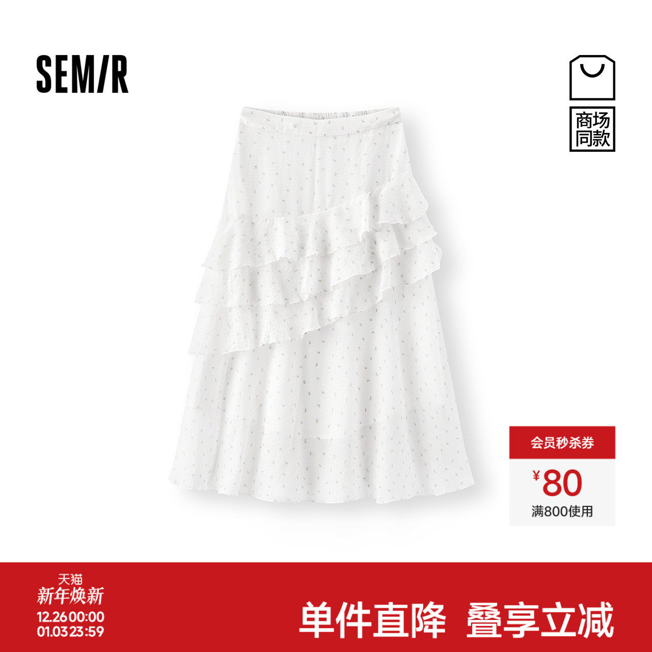 [商场同款]森马半身裙女不规则荷叶边秋季2025新款肌理雪纺碎花裙