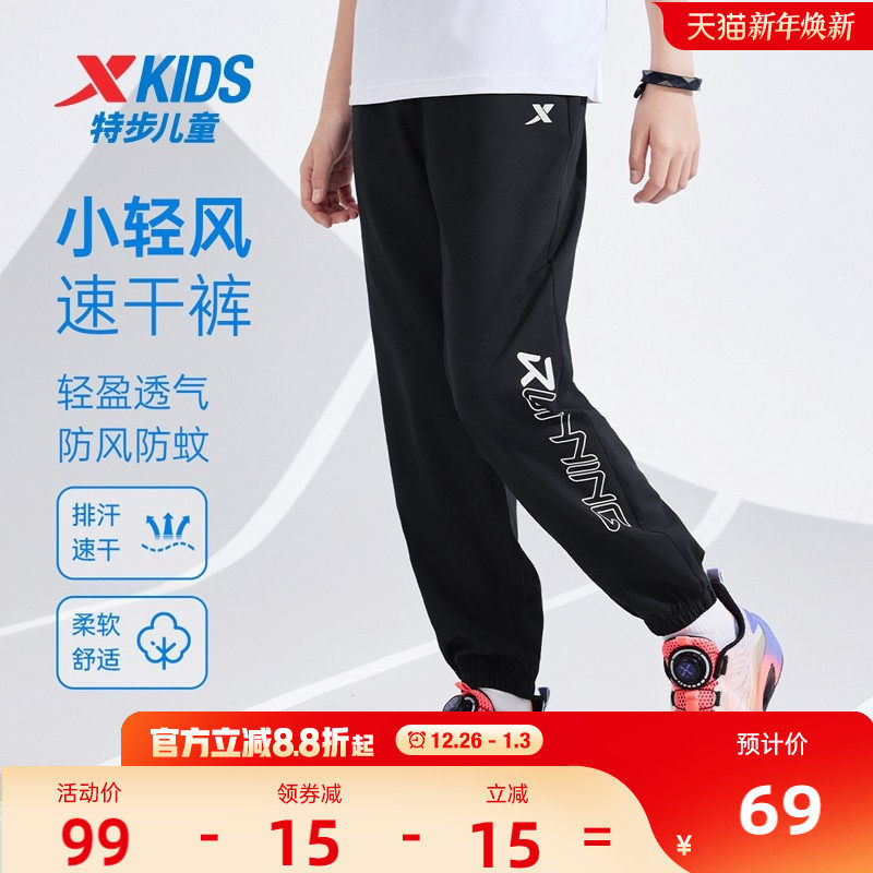 特步童装儿童运动裤中大童速干裤子2025夏季新款男童防蚊裤长裤子
