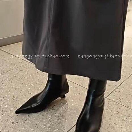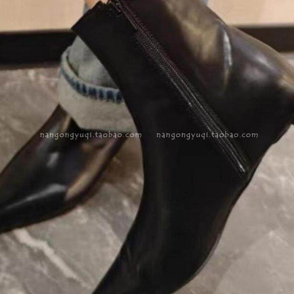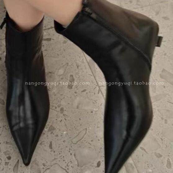 现韩国东大门女鞋2024秋新款ins极简法式复古尖头小猫跟及裸短靴