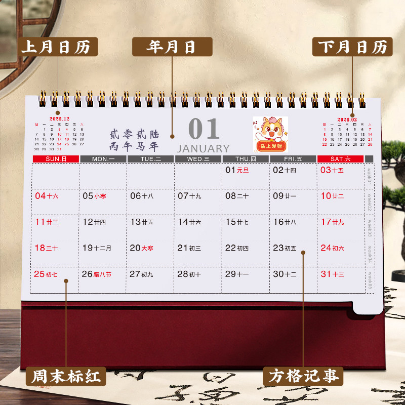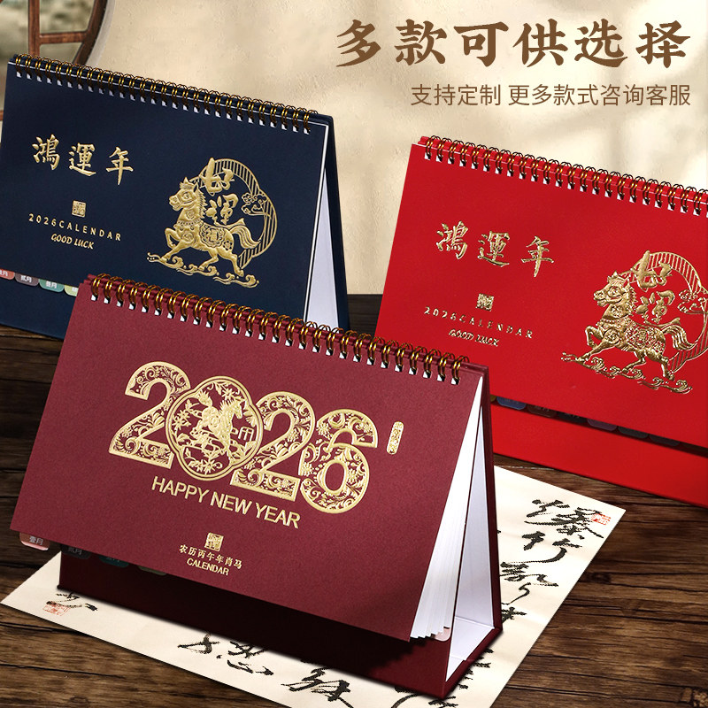 台历2026年新款日历定制logo创意简约小清新韩式办公年历个性中国风桌面摆件商务工作记事计划本订制广告月历