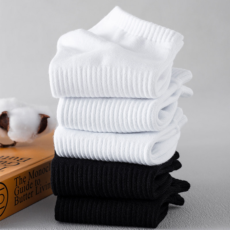 袜子短袜男船袜夏季薄款黑色白纯色纯棉防臭吸汗透气跑步运动袜女