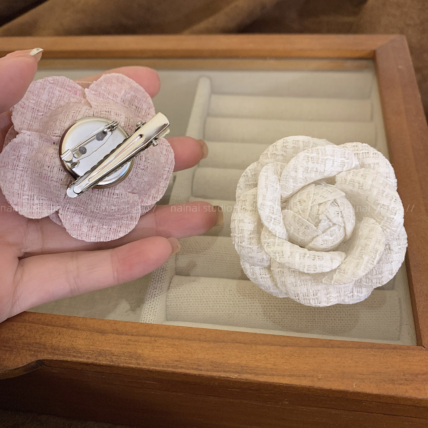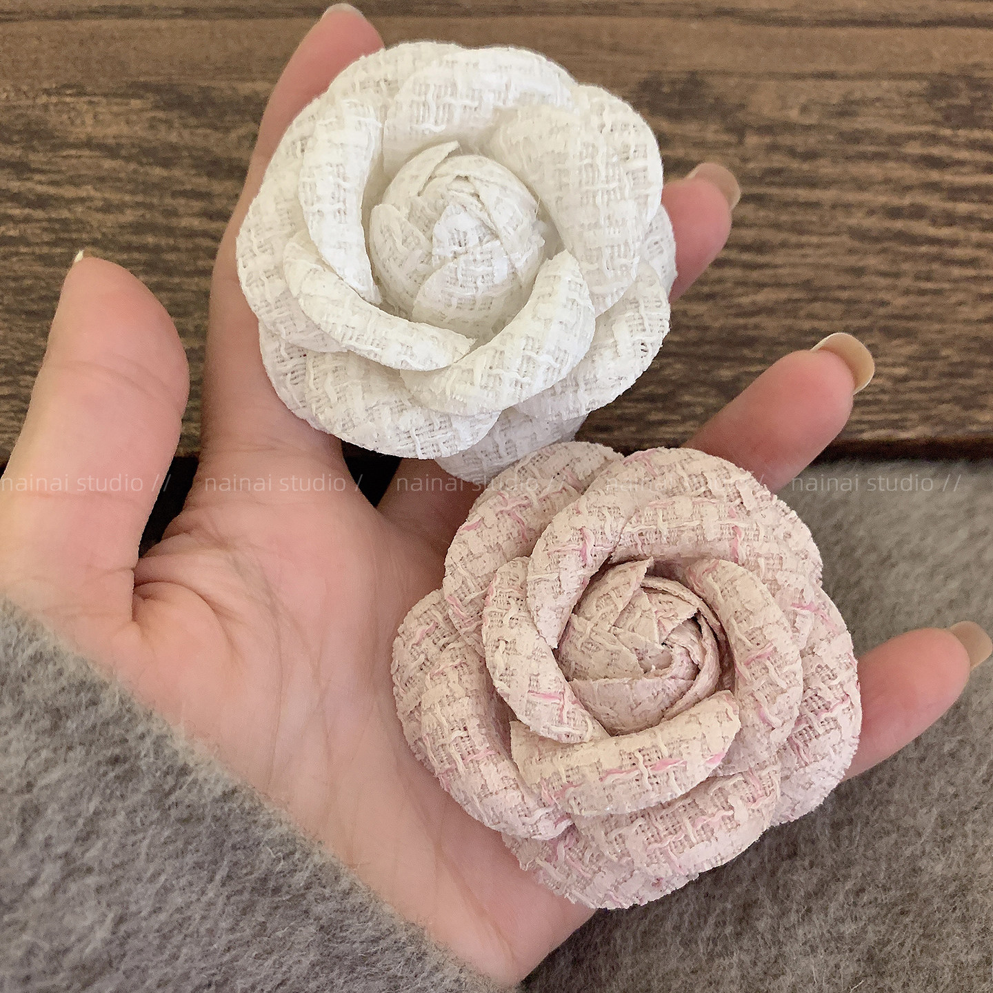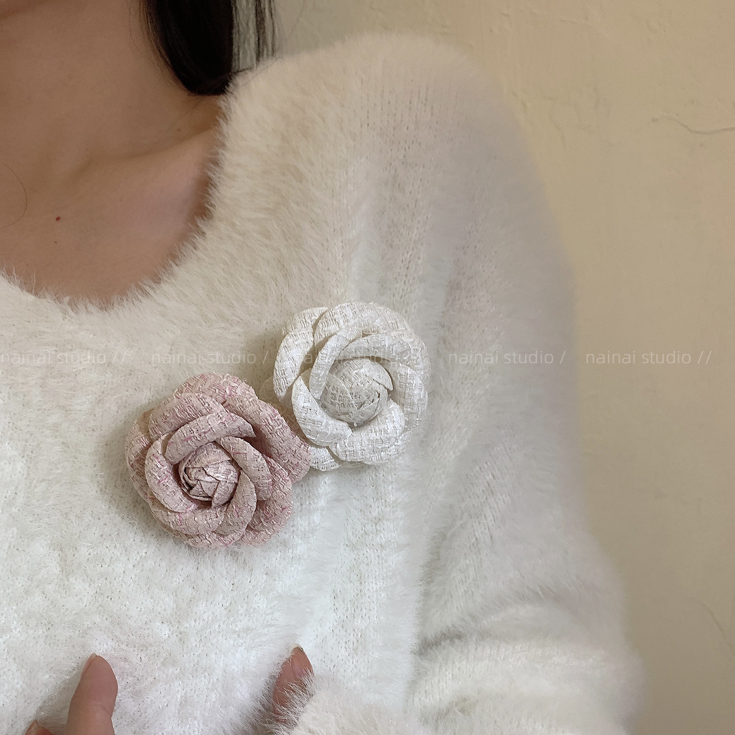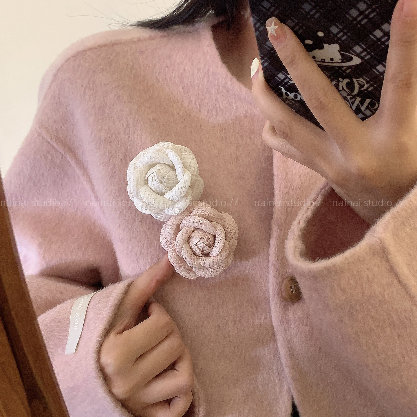 粉色山茶花胸针~小香风复古法式中古花朵别针胸花大衣西装配饰女