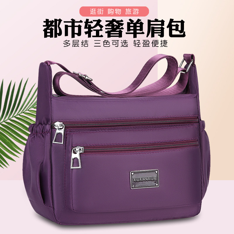 女士尼龙防水轻便旅游背包中年妈妈包单肩牛津布包大气斜挎包多层
