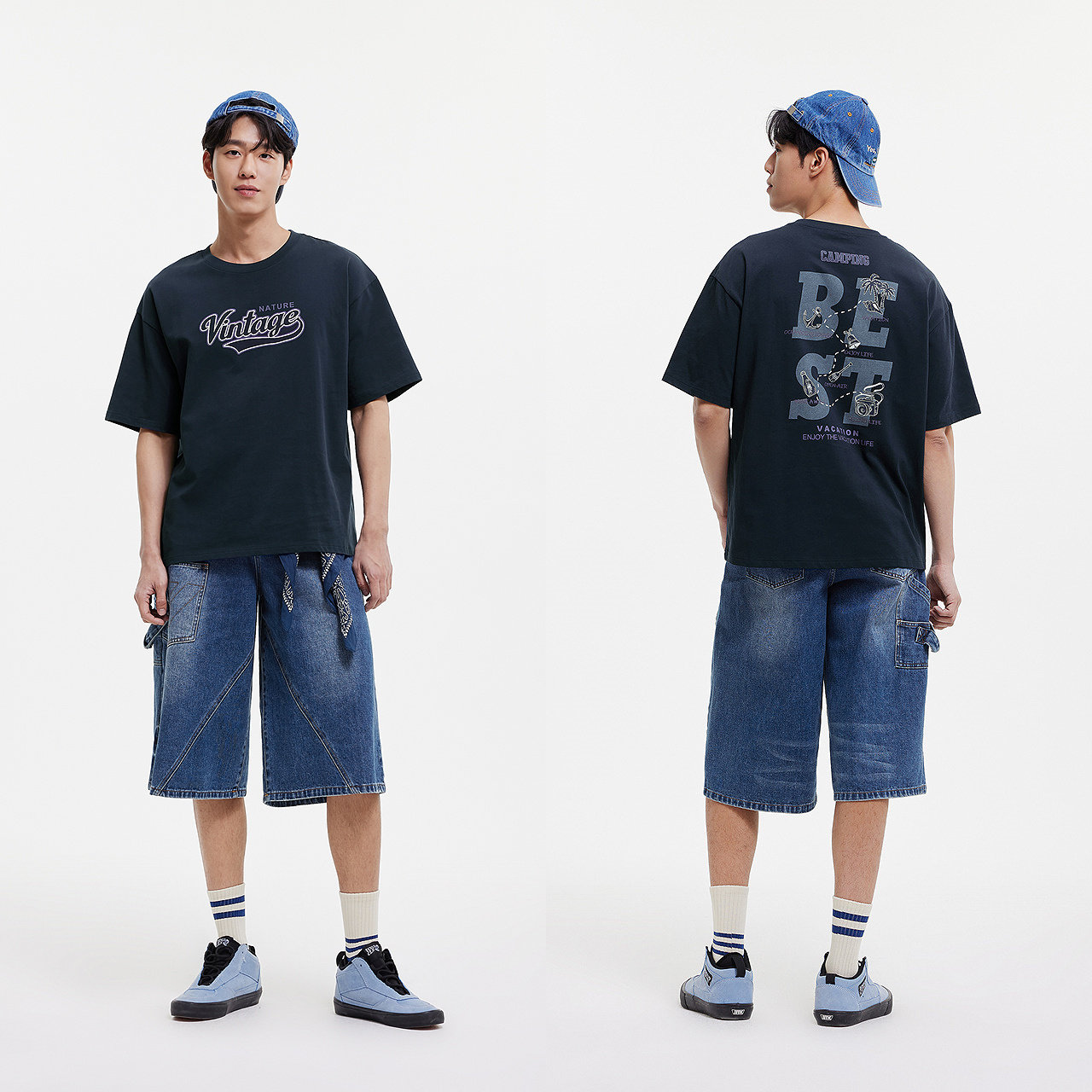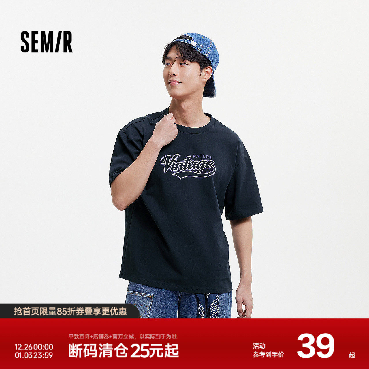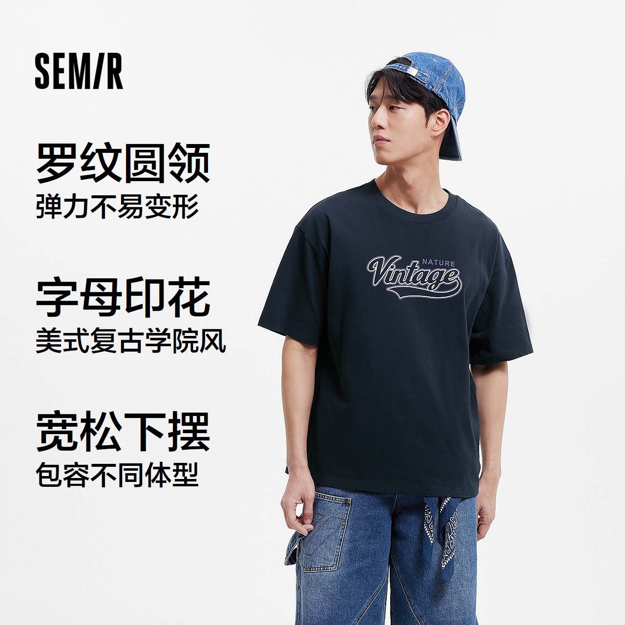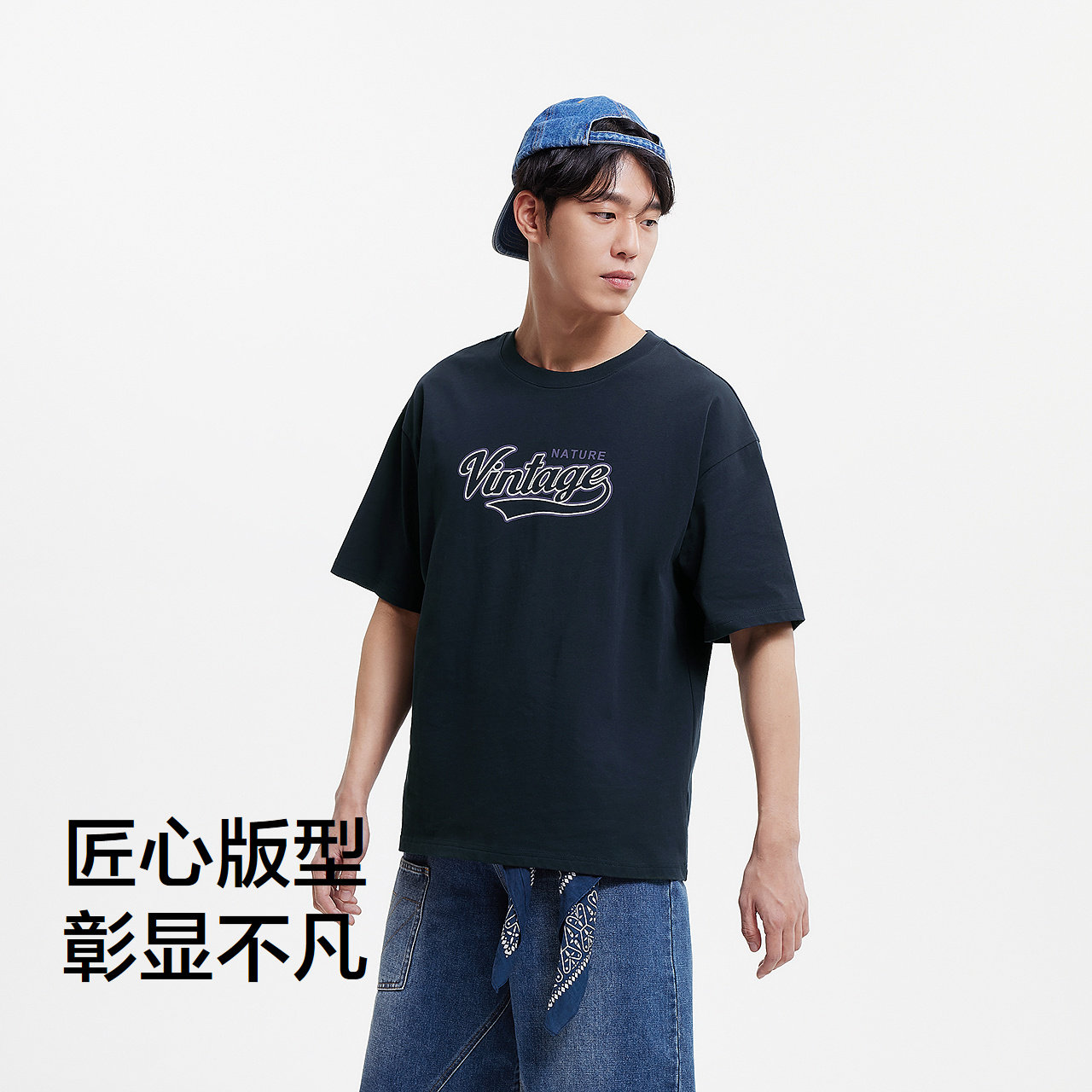 森马短袖T恤男美式复古学院风上衣宽松度假感夏装大字母印花潮流