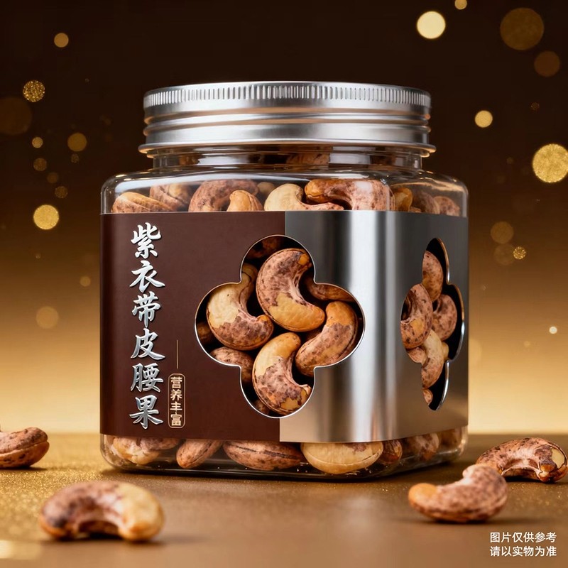 2025年新货带皮腰果500g原味盐焗大颗粒罐装紫衣紫皮干果坚果零食