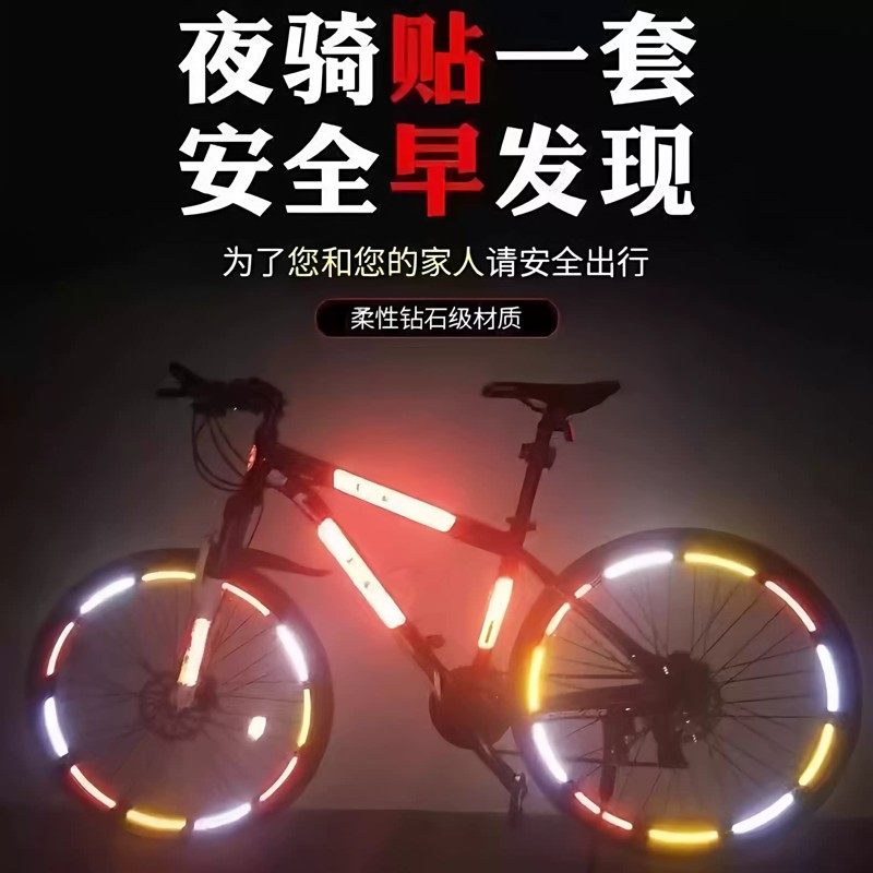 公路/山地自行车通用轮毂夜光反光贴夜骑警示贴轮胎装饰反光条