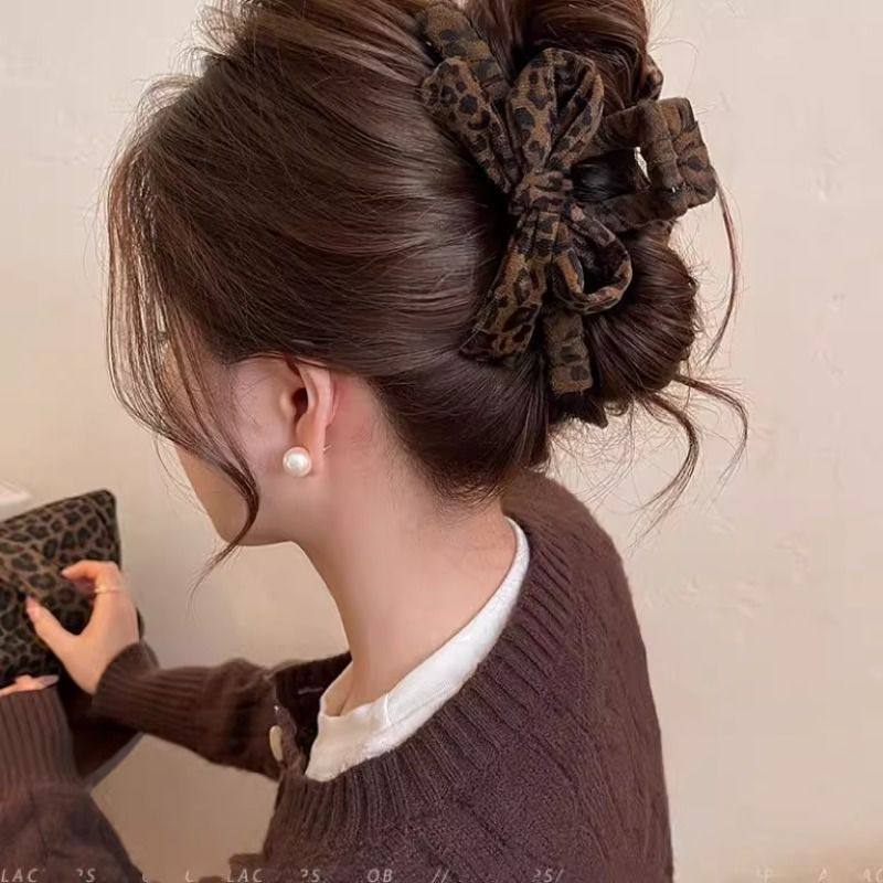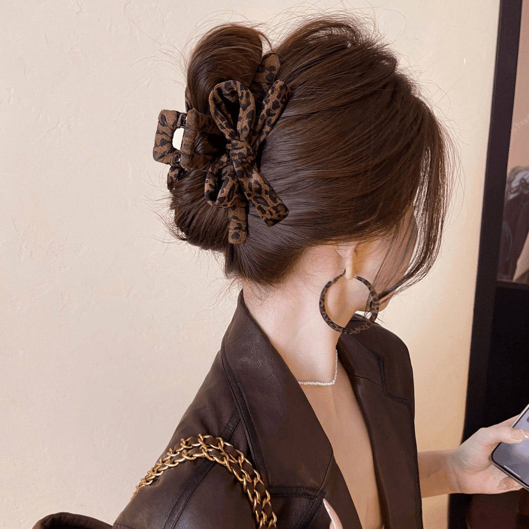 时髦回归~头发抓夹女豹纹蝴蝶结鲨鱼夹2025新款发夹高级感发饰秋