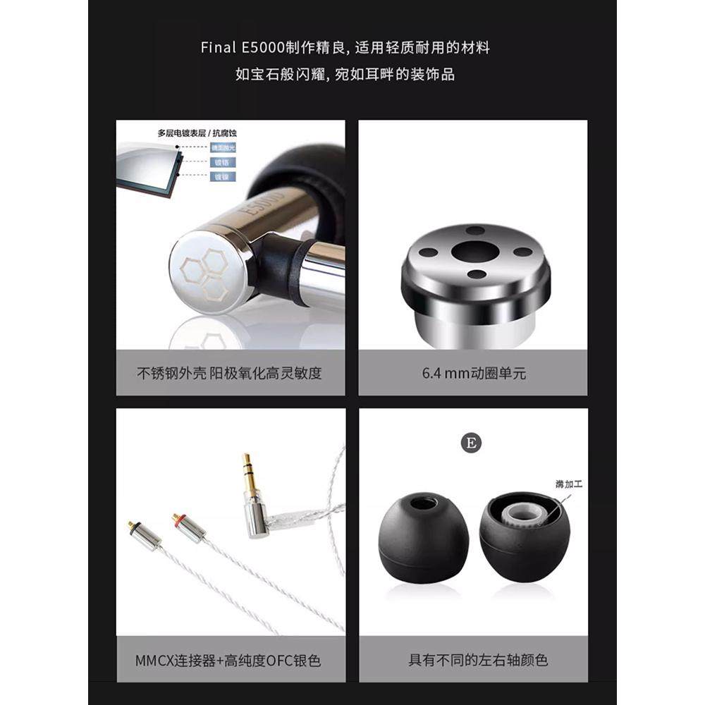 final E5000可换线HiFi高保真监听式动圈入耳式耳机平衡京线有线